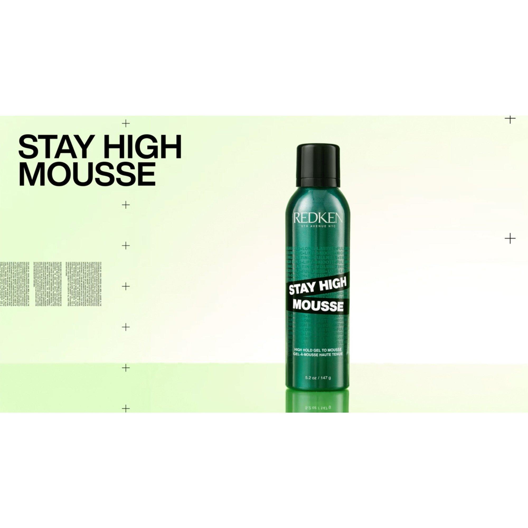 Redken's Stay High Volumizing Mousse provides 24-hour hold and high volume to all hair types. Formulated with a gel-to-mousse texture that combines the benefits of a gel and a mousse.