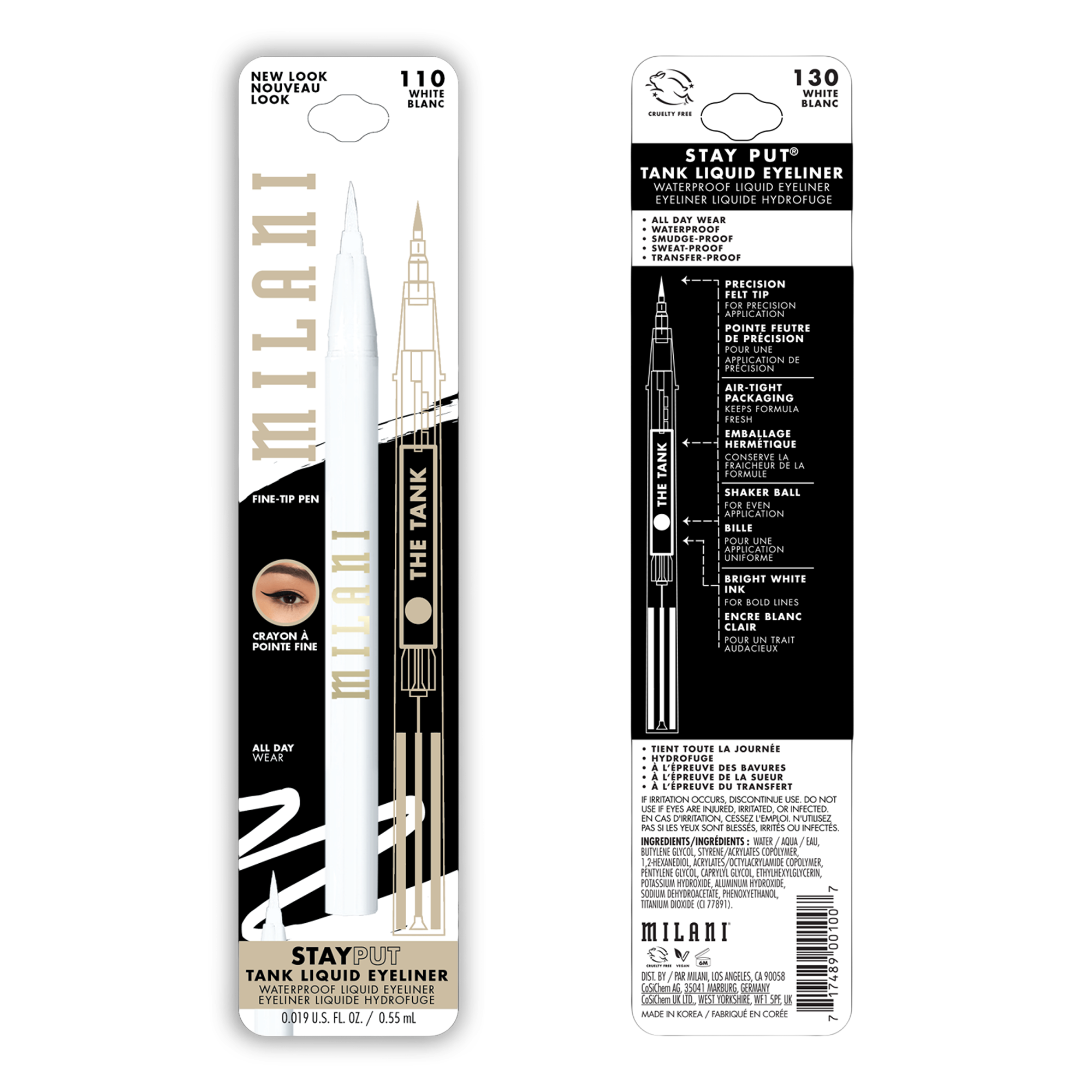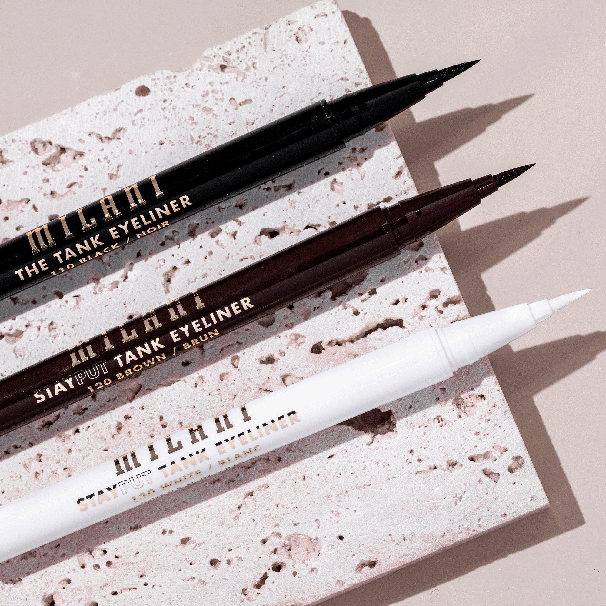 Milani Stay Put Tank Liquid Eyeliner is a fine, felt tip pen for precision application with pigment-intense color that's waterproof, transfer-proof and lasts up to 24 hours.