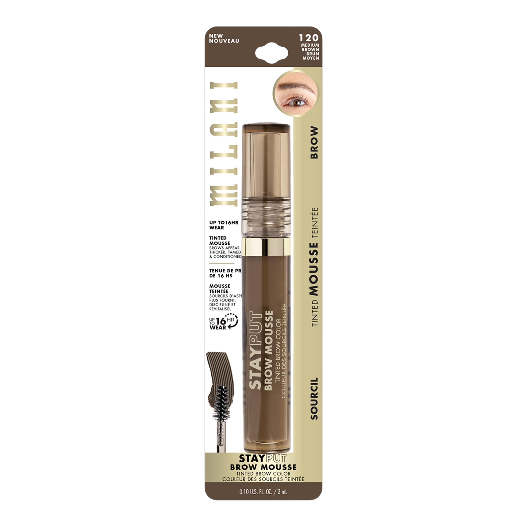 Take brows from blah to bold with up to 16 hours of wear. Milani Stay Put Tinted Brow Mousse is a high-pigment tint designed to tame, build and thicken the appearance of brows.