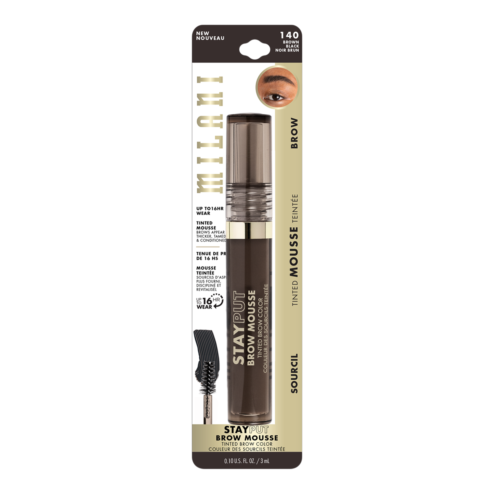 Take brows from blah to bold with up to 16 hours of wear. Milani Stay Put Tinted Brow Mousse is a high-pigment tint designed to tame, build and thicken the appearance of brows.