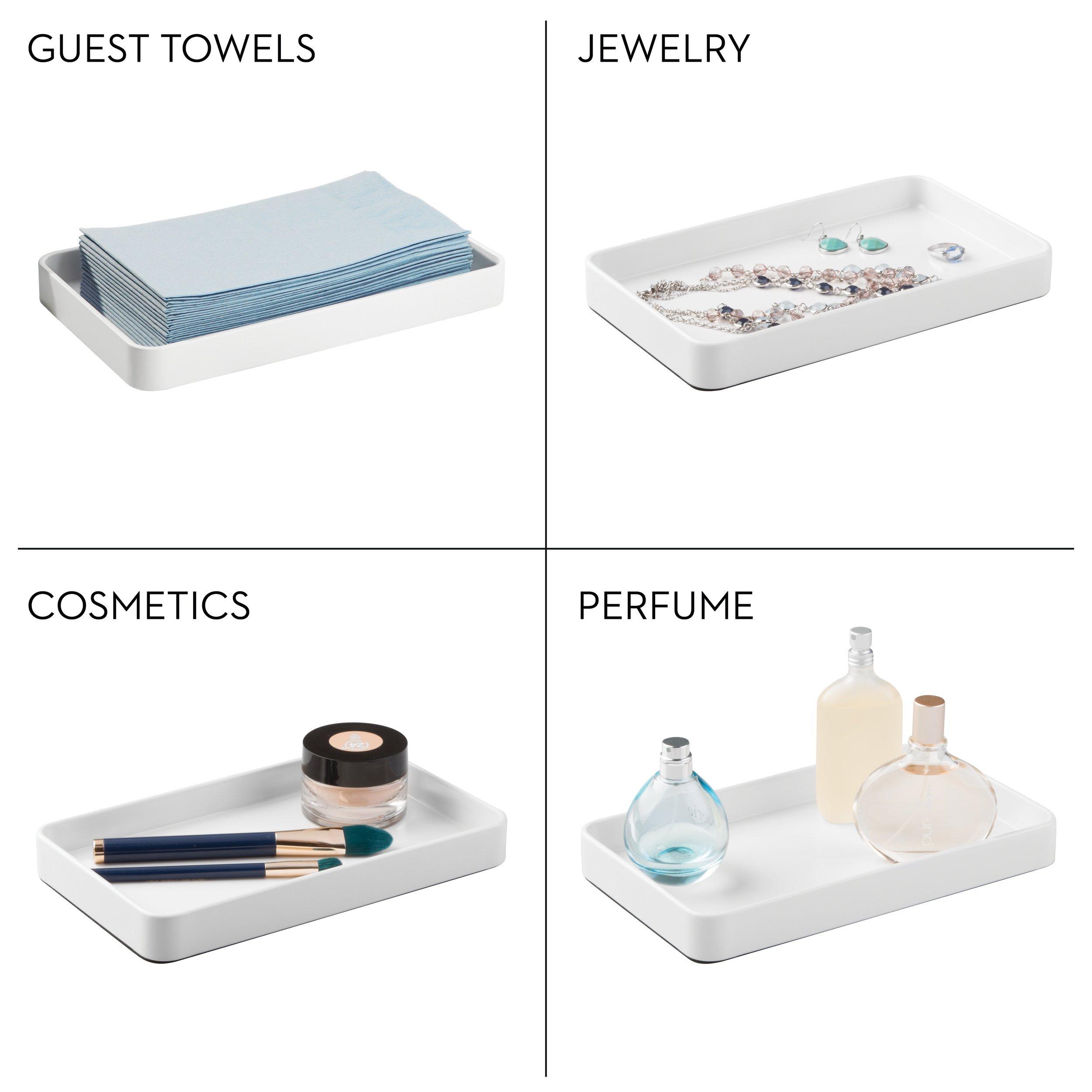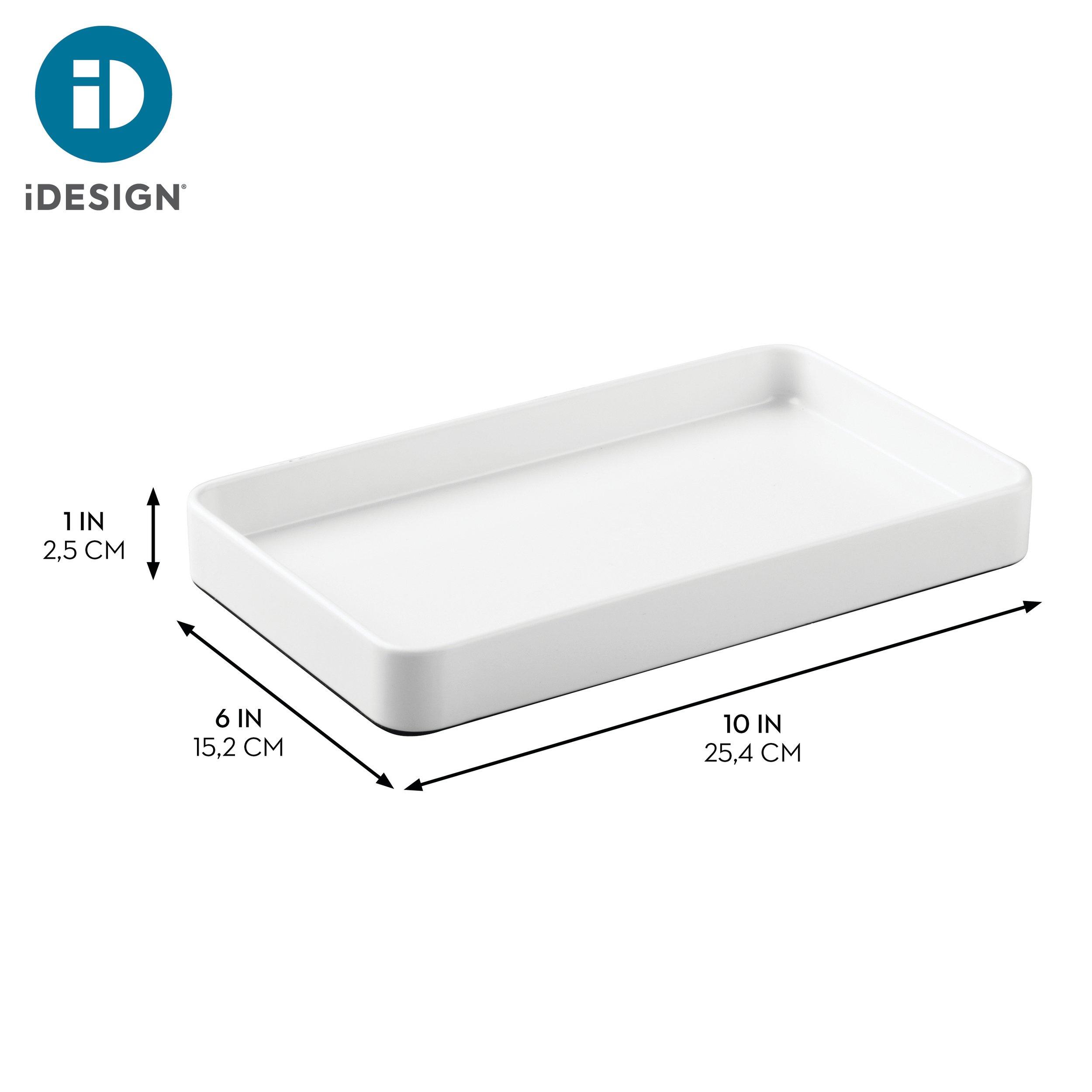 The iDesign Gia Vanity Tray makes a style statement wherever it's placed. This elongated tray easily corrals soap pumps and room sprays on countertops, jewelry and accessories on dressers, or makeup brushes on vanities--banishing clutter in style. With iDesign, you can live simply every day.