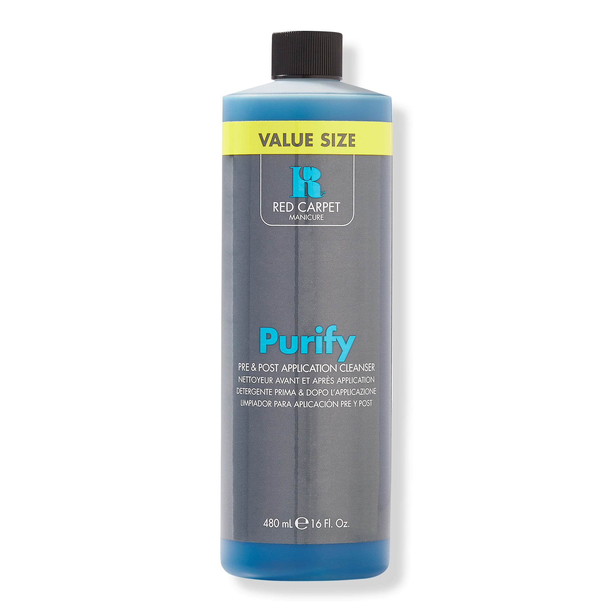 Red Carpet Manicure Purify Pre & Post Application Cleanser removes residue and cleanses the surface of the nail.