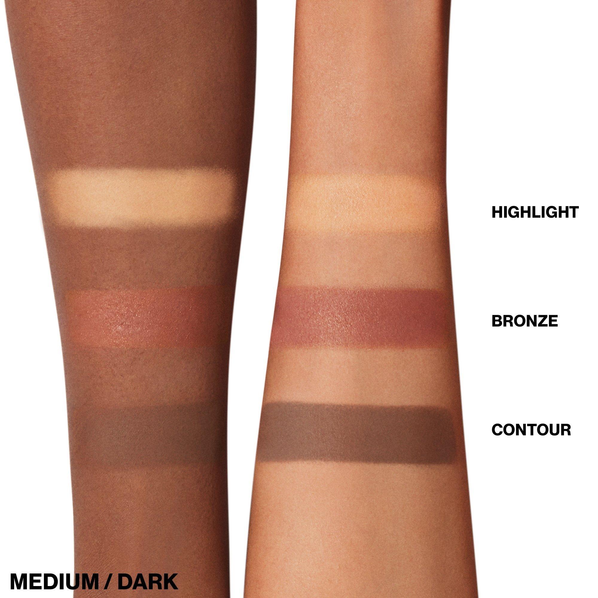 Meet your lighting kit in a compact. This 3-shade palette contours, bronzes, and highlights to mimic studio-lit dimension.