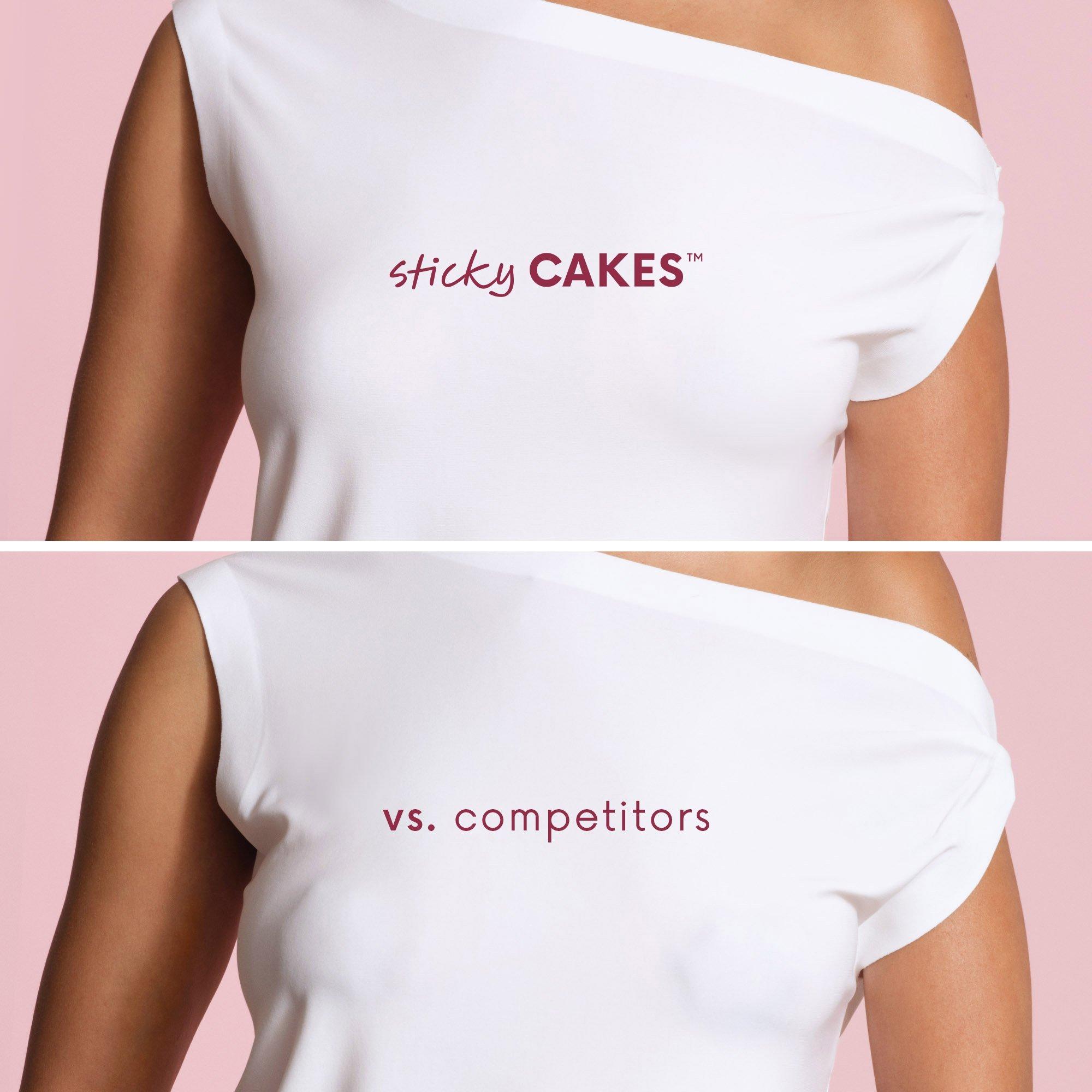 The viral sticky CAKES circles by CAKES Body are comfortable, seamless, adhesive nipple covers that can be worn with every backless, strapless, low cut outfit.