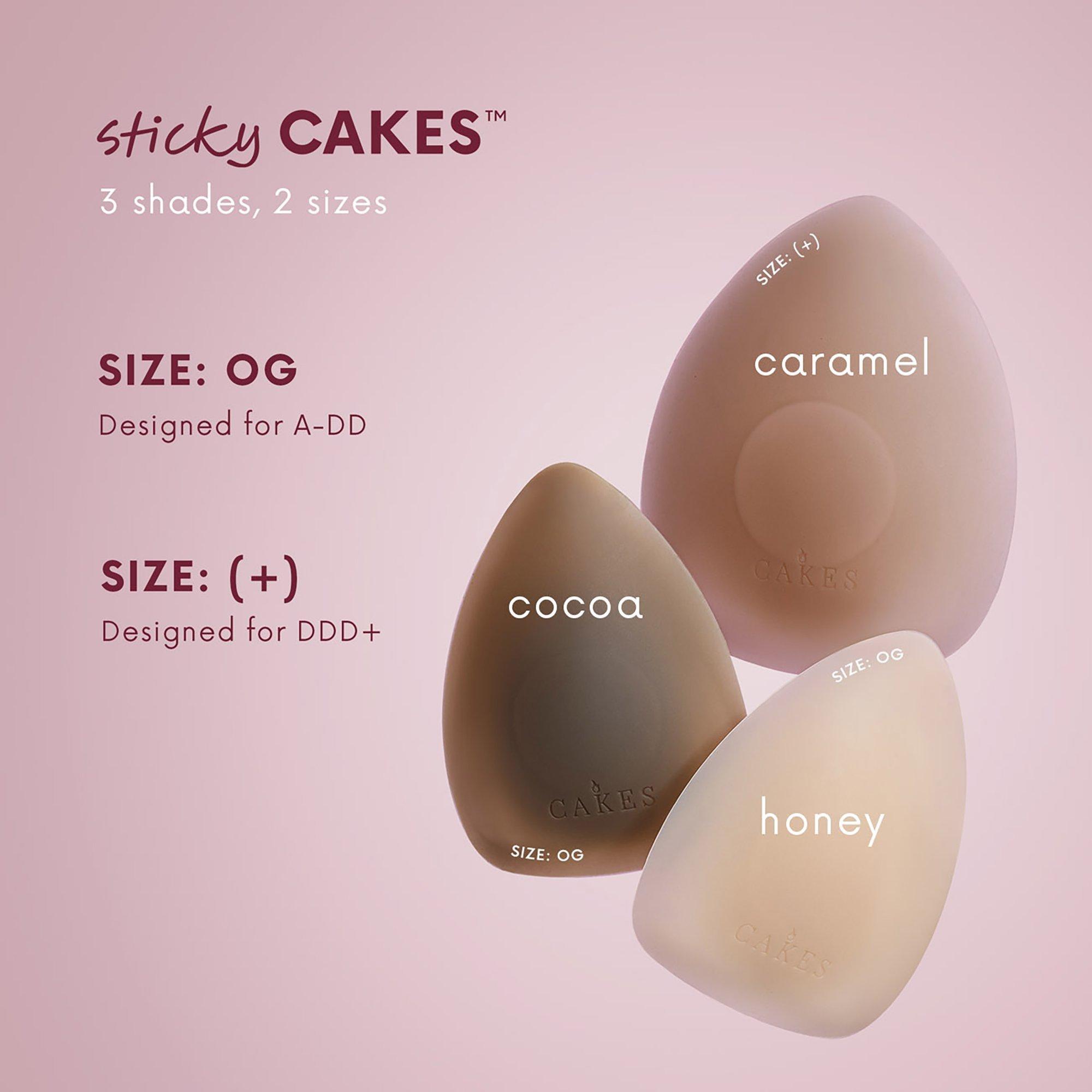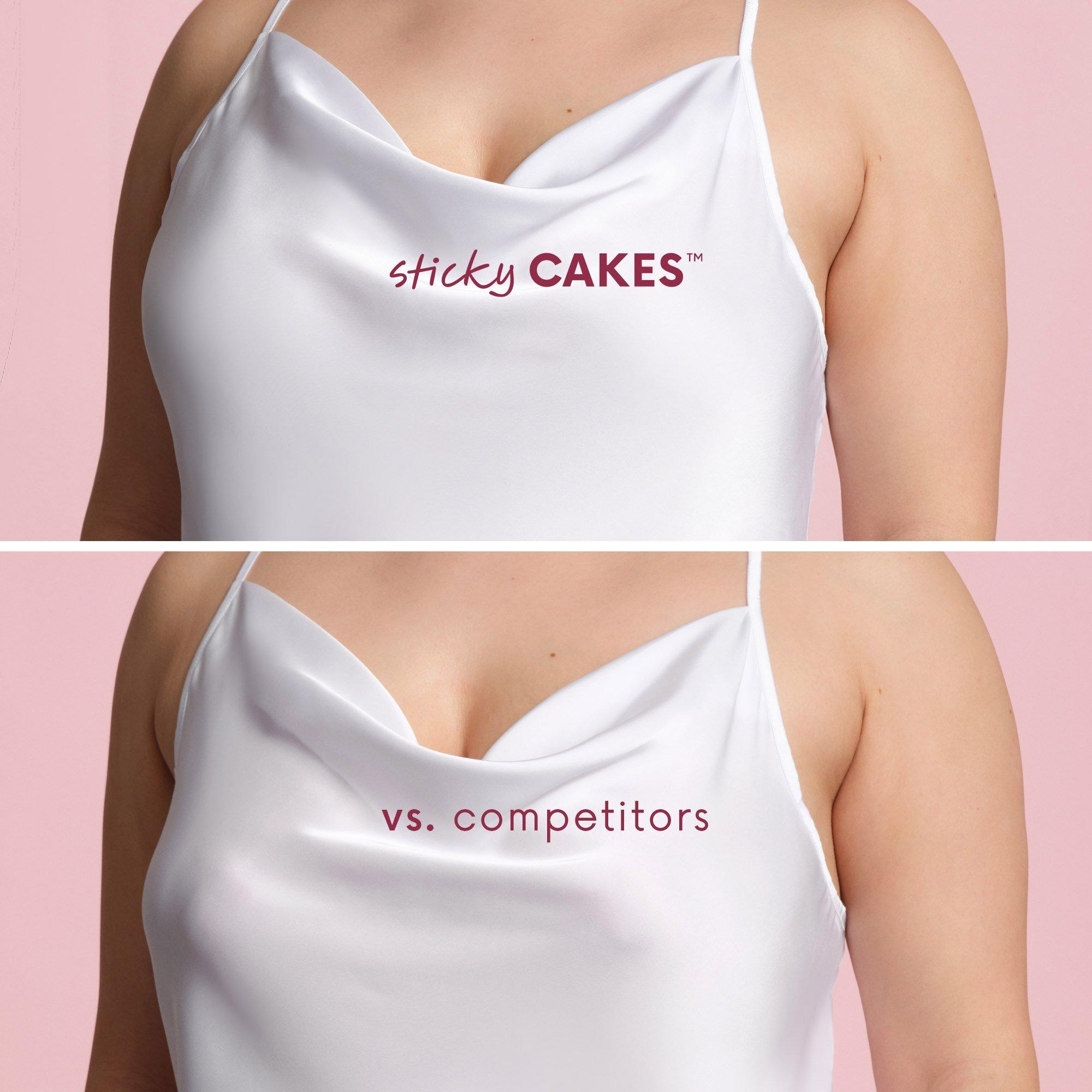 The viral sticky CAKES triangles by CAKES body are adhesive nipple covers that provide gentle, seamless coverage. The triangle shape is designed to disappear under deep vees and low cut necklines.