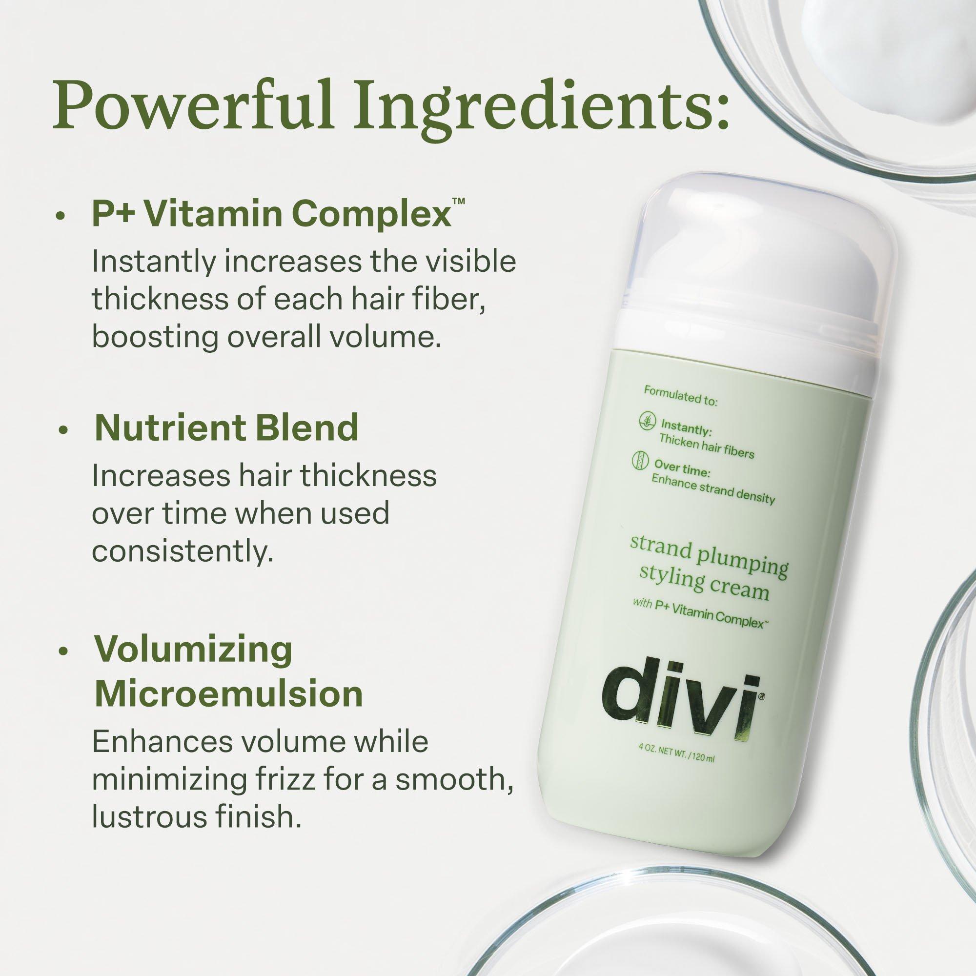 Your styling routine just got upgraded. Formulated for hair that lacks fullness Divi Strand Styling Cream instantly thickens the look of strands for up to 2.8x more volume* while enhancing long-term thickness with continued use. *In independent laboratory testing on hair tresses compared to baseline