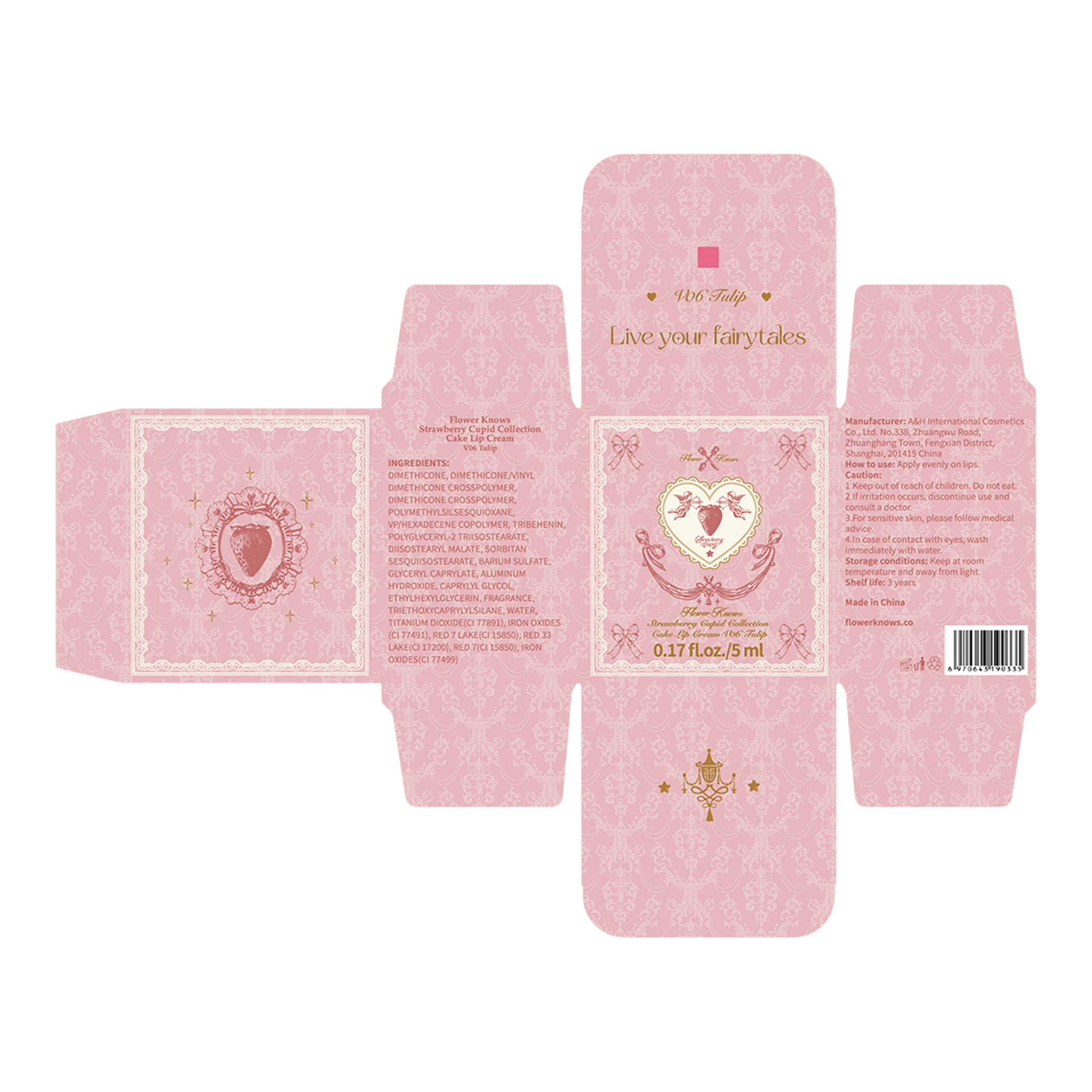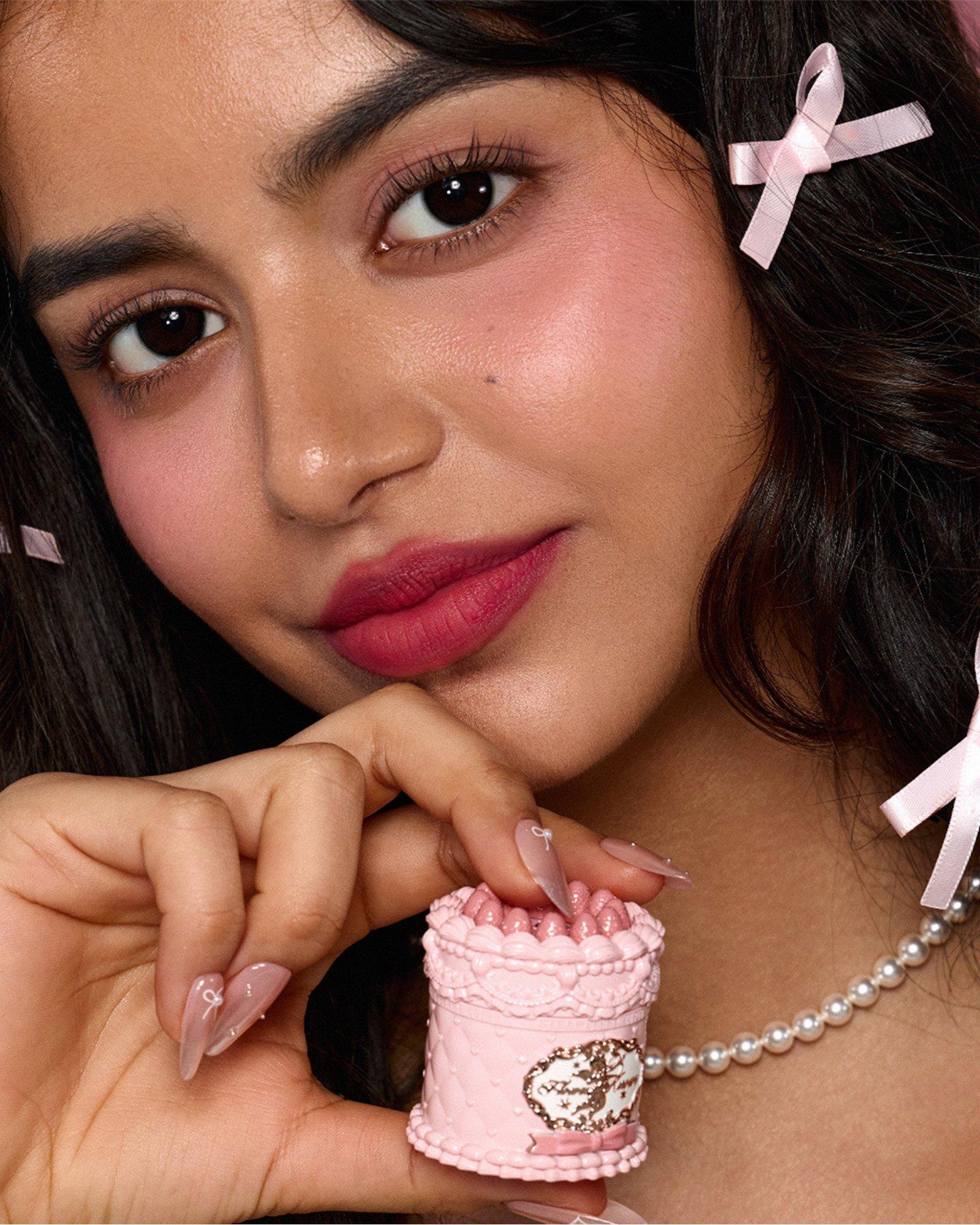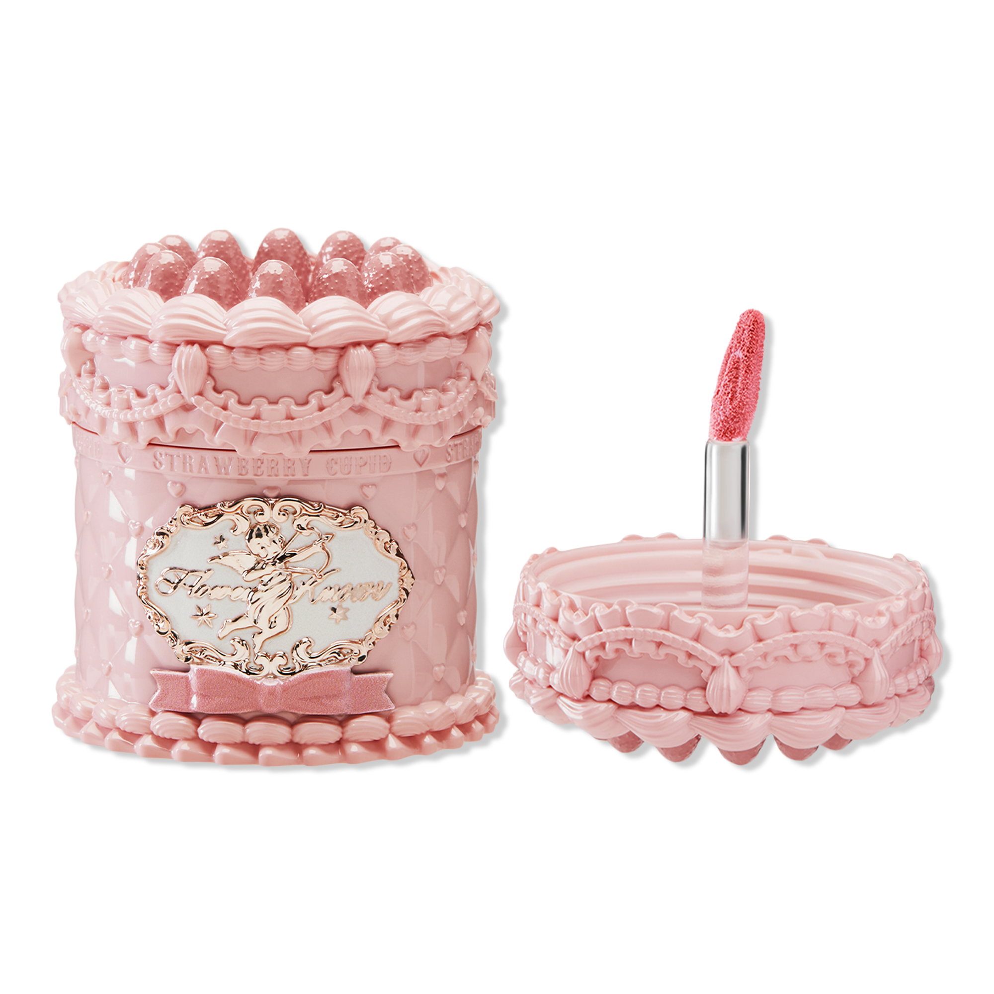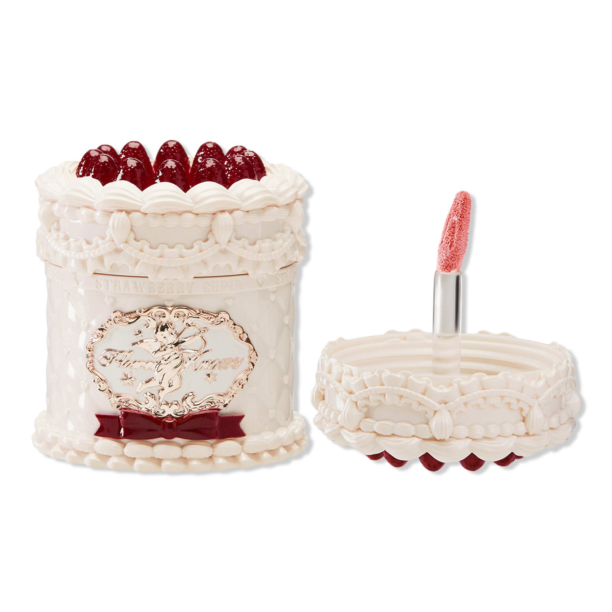 Designed to look like a decadent strawberry cream cake, Flower Knows Strawberry Cupid Cake Lip Cream is a mini lip balm jar featuring dessert-inspired shades in a soft matte finish—delivering a smooth, blurred look for effortless elegance.