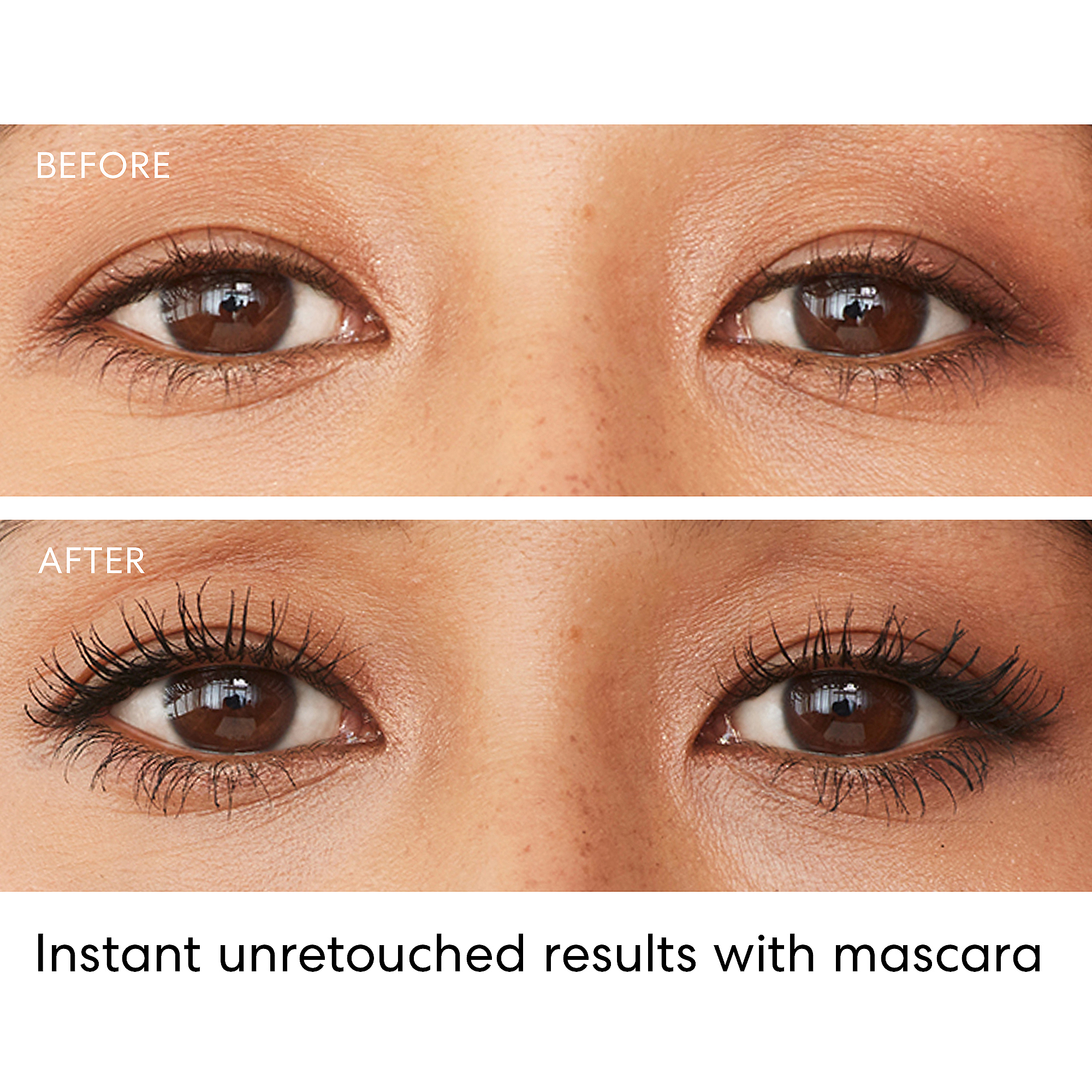 1. LENGTHEN: Position the brush horizontally, directly under lashes as close to the root as possible, and lift up and out - no need to wiggle. Apply as many coats as you'd like to give lashes amazing length and lift.