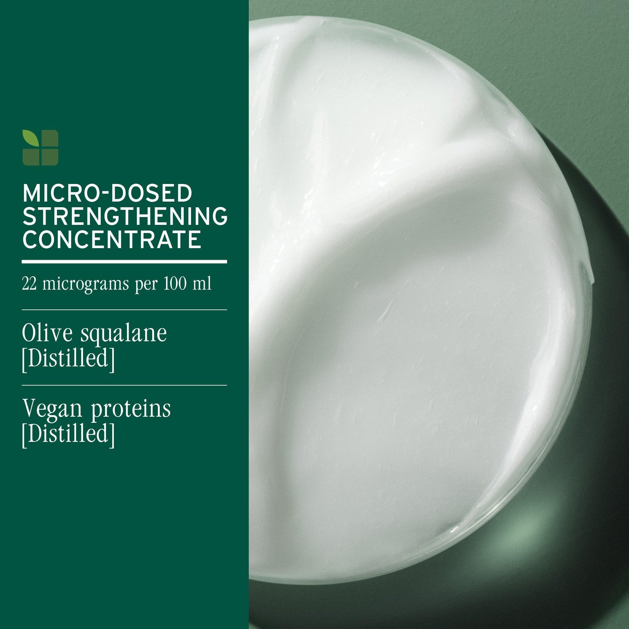 Experience the strengthening power of Biolage's Strength Recovery Conditioner. This nourishing conditioner, infused with micro-dosed olive squalane and vegan proteins, fortifies weak strands, locking in moisture while enhancing softness and shine. Hair is stronger, detangled, and more manageable.