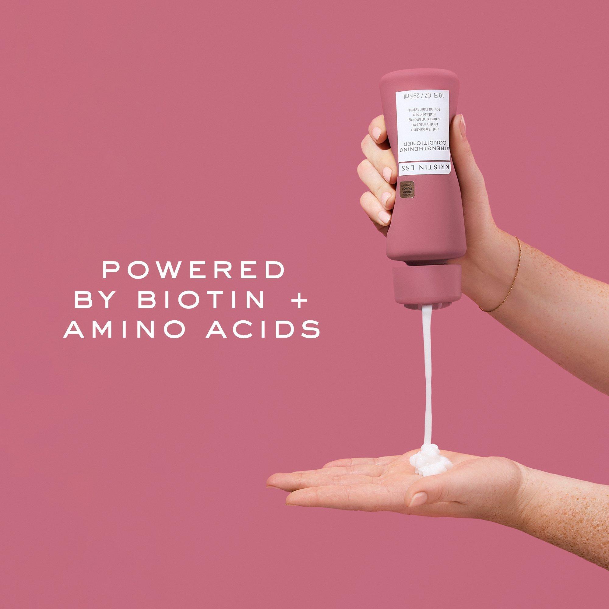 The Kristin Ess Hair Strengthening Conditioner is infused with biotin and amino acid, formulated to help fight frizz, boost resiliency, and help prevent breakage. It detangles easily and leaves hair smoother, shinier, and healthier-looking after each use.