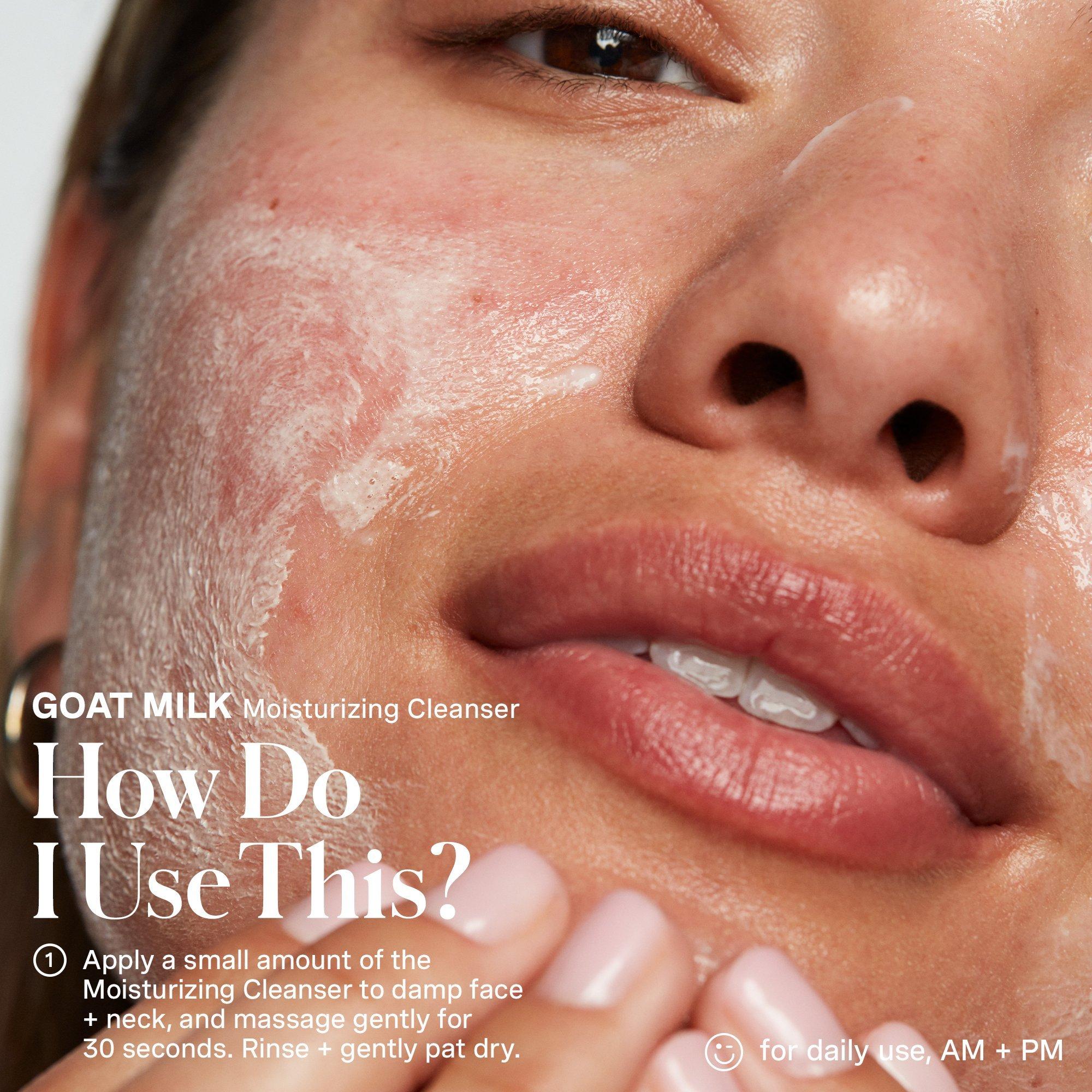 Goat Milk Moisturizing Cleanser: Good for: Morning + Evening.