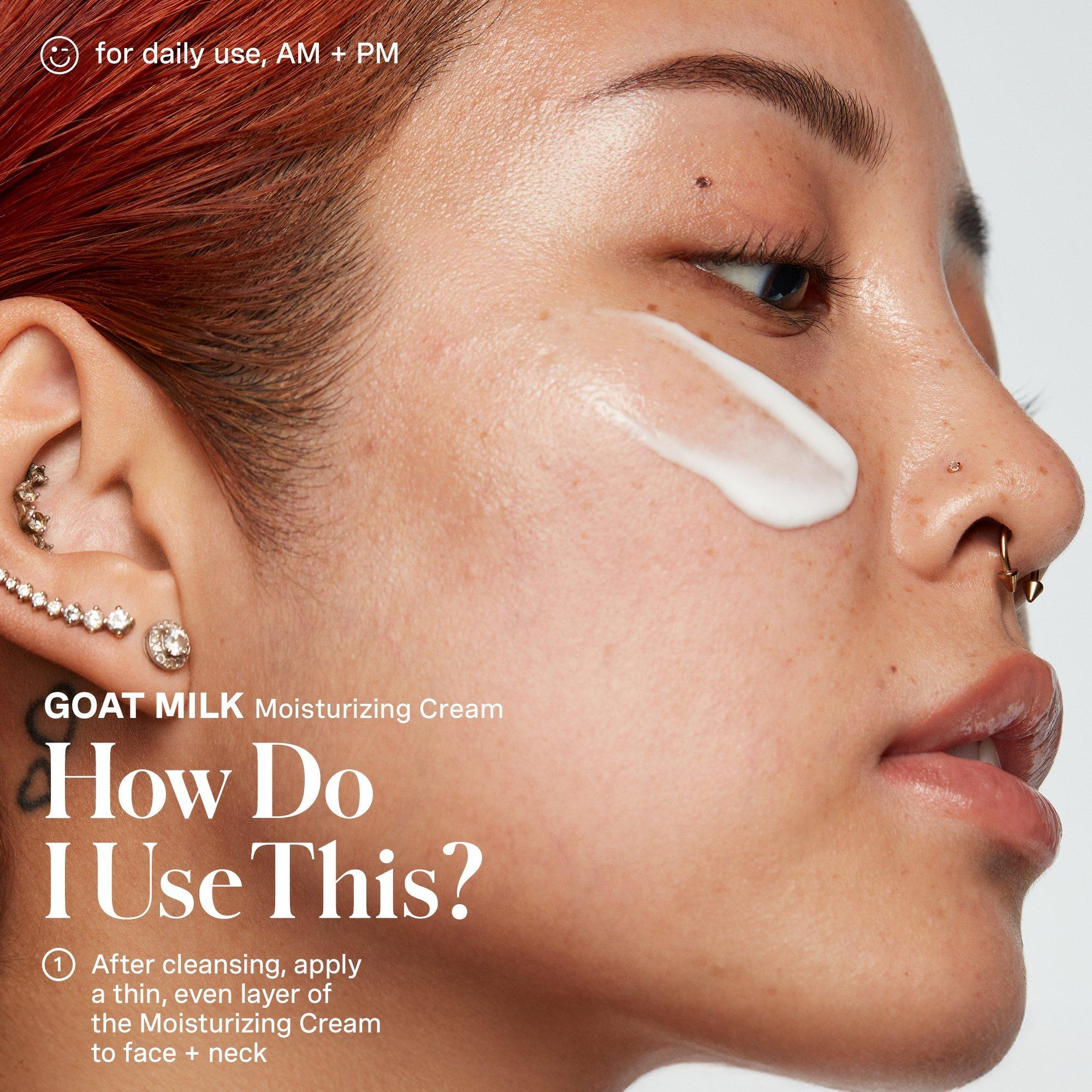 Goat Milk Moisturizing Cream: Good for: Morning + Evening.