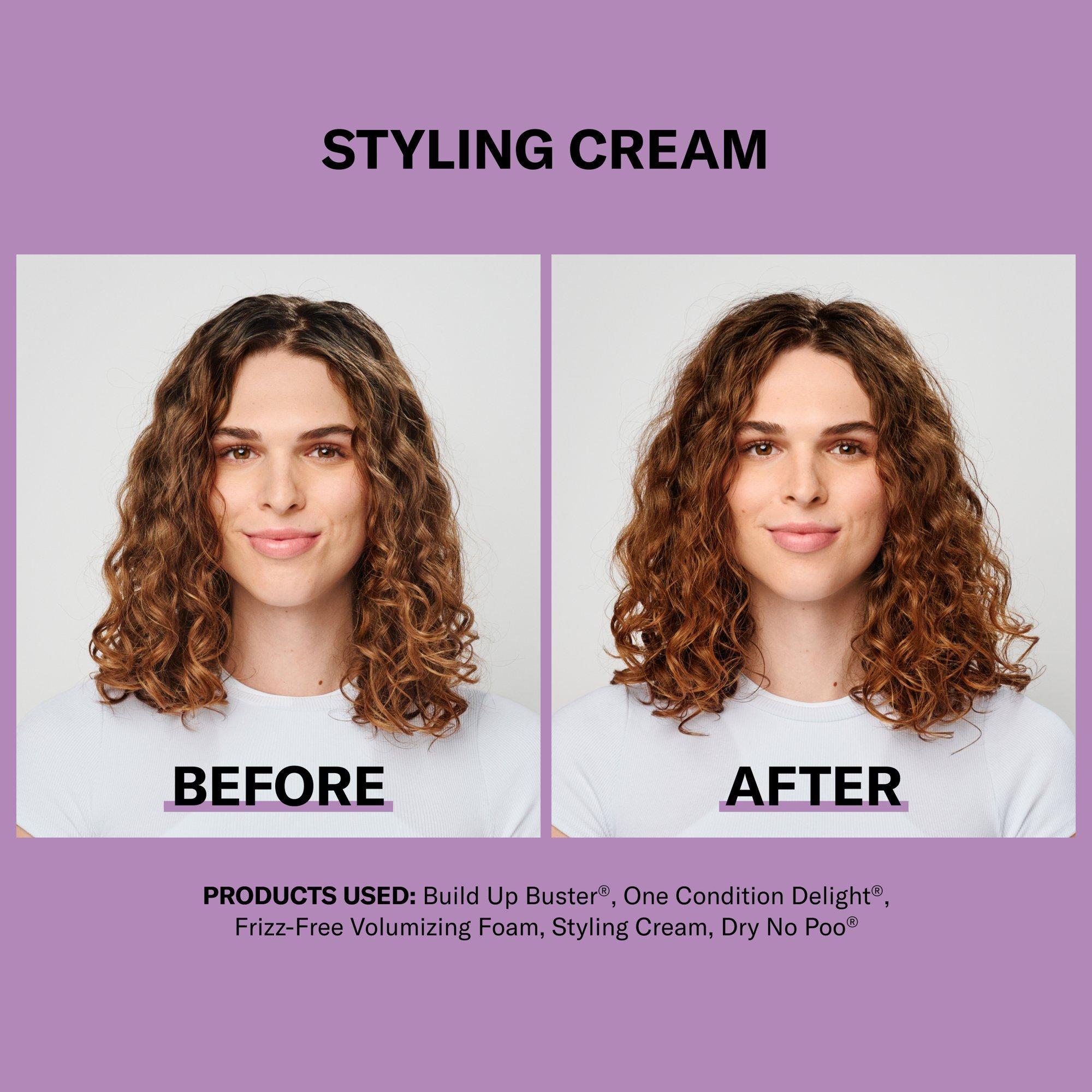 Get totally touchable style with DevaCurl's STYLING CREAM Touchable Moisturizing Definer. This rich cream, with a hydra-definition blend, provides medium to coarse curls with shape, frizz control, and a no-crunch finish.