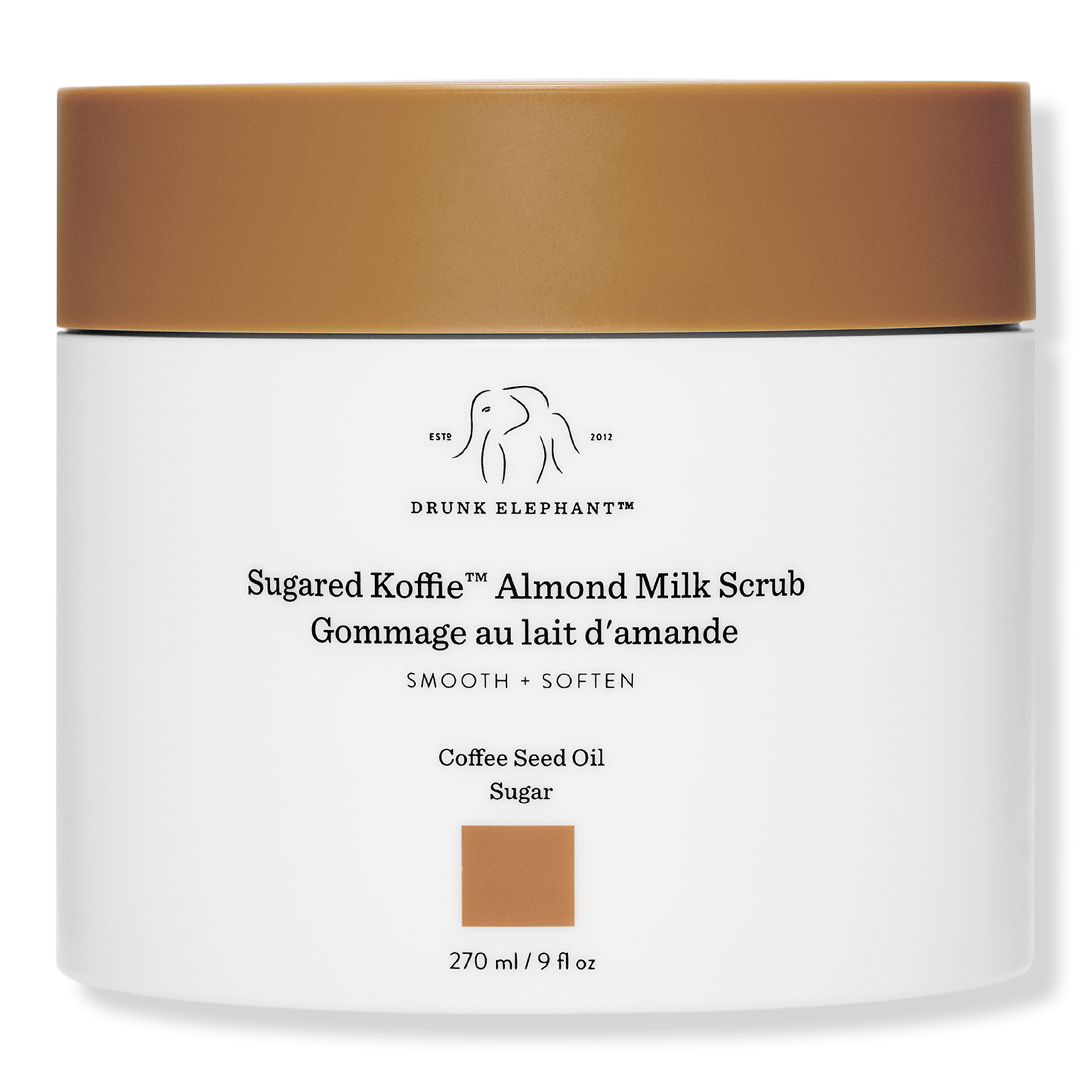 Drunk Elephant's Sugared Koffie Almond Milk Body Scrub gently sweeps away dead skin cells and buffs dry spots as it delivers moisture - all without disrupting your skin barrier or sensitizing.
