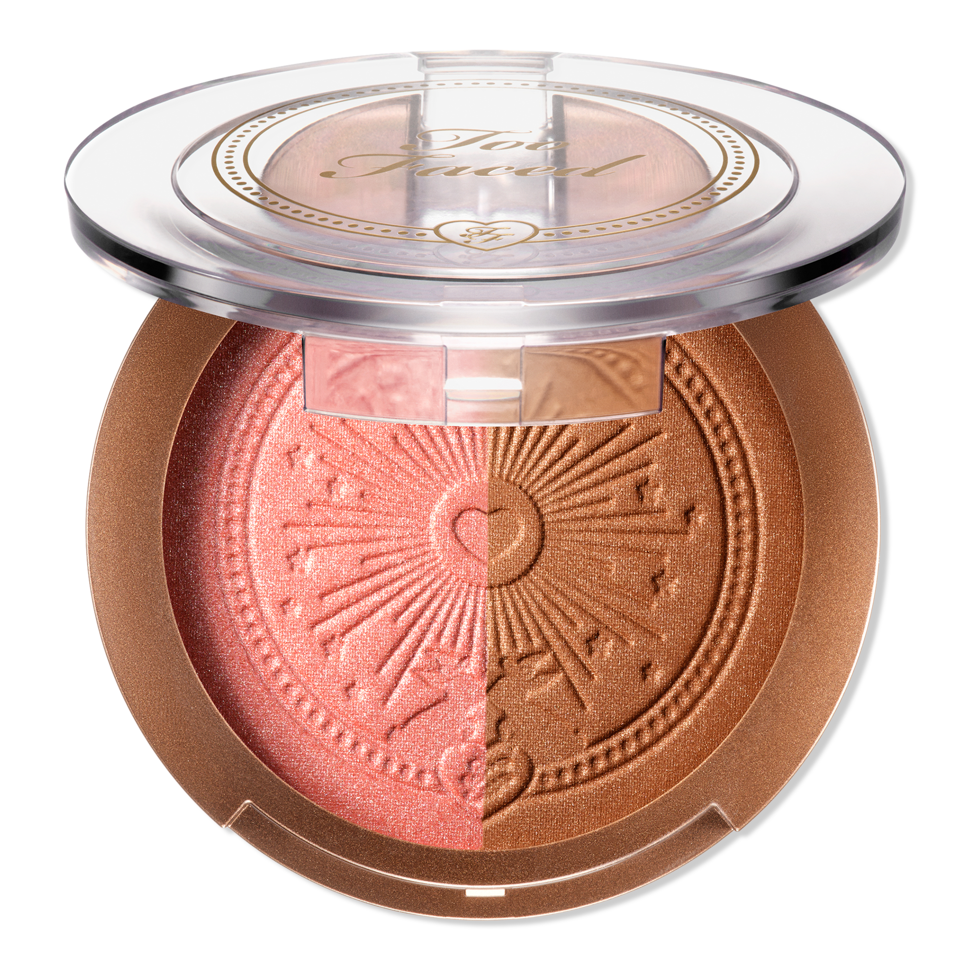 Glowing dual-shade palette delivers bronzer, blush, and highlighter all in one compact. Silky-smooth, sheer powder formula looks naturally luminous.