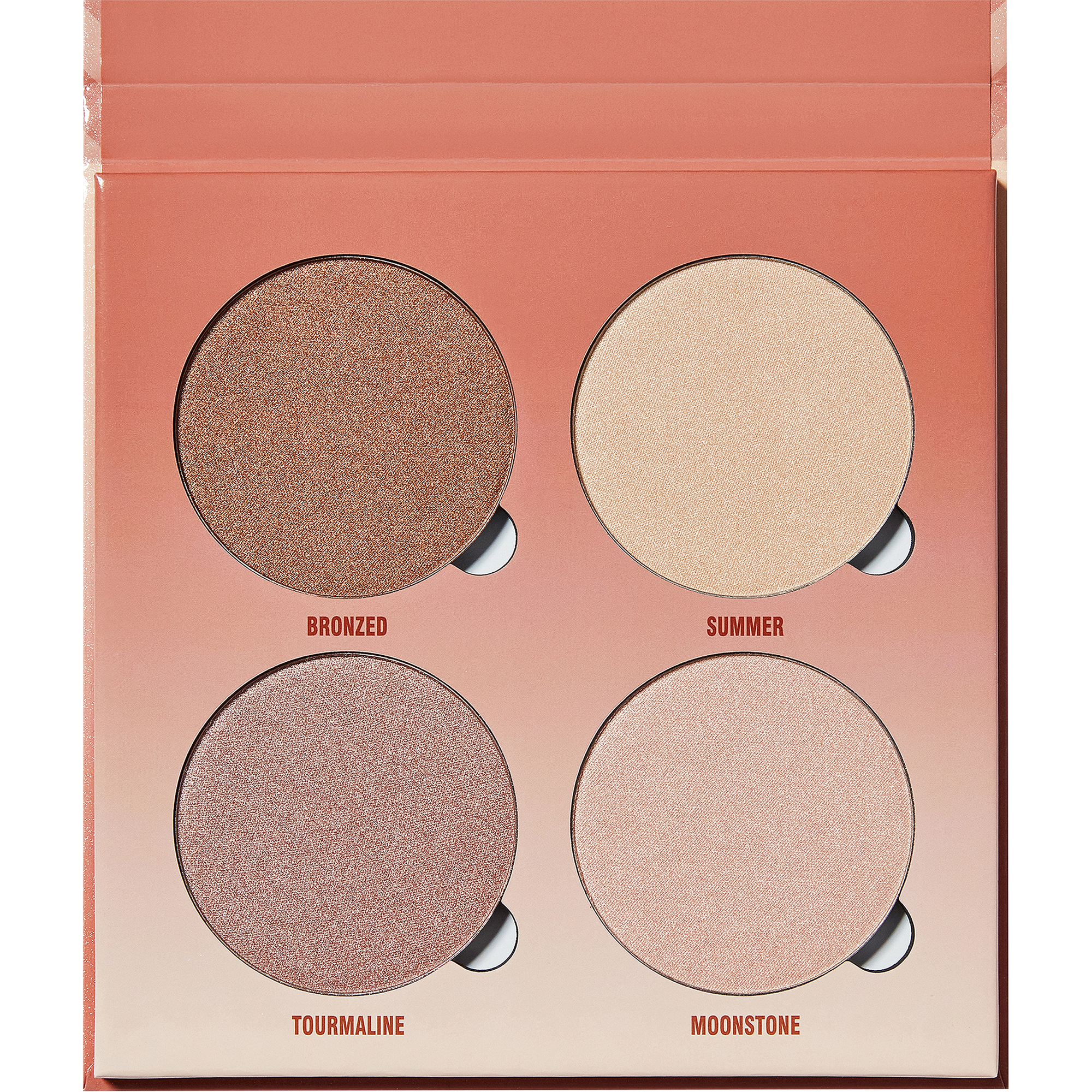 Sun Dipped: Bronzed, Tourmaline: Mica, Synthetic Fluorphlogopite, Talc, Ethylhexyl Palmitate, Octyldodecanol, Synthetic Wax, Boron Nitride, Dimethicone, Magnesium Myristate, Caprylyl Glycol, Ethylhexylglycerin, Theobroma Grandiflorum Seed Butter. May Contain: Iron Oxides (CI 77491, CI 77499), Titanium Dioxide (CI 77891). Moonstone: Mica, Synthetic Fluorphlogopite, Talc, Ethylhexyl Palmitate, Octyldodecanol, Synthetic Wax, Boron Nitride, Dimethicone, Magnesium Myristate, Caprylyl Glycol, Ethylhexylglycerin, Theobroma Grandiflorum Seed Butter, Tin Oxide. May Contain: Iron Oxides (CI 77491, CI 77492, CI 77499), Titanium Dioxide (CI 77891). Summer: Synthetic Fluorphlogopite, Talc, Mica, Ethylhexyl Palmitate, Octyldodecanol, Synthetic Wax, Boron Nitride, Dimethicone, Magnesium Myristate, Caprylyl Glycol, Ethylhexylglycerin, Theobroma Grandiflorum Seed Butter, Tin Oxide. May Contain: Iron Oxides (CI 77491, CI 77492, CI 77499), Titanium Dioxide (CI 77891).