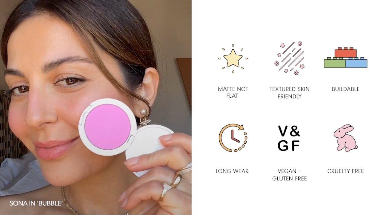 Persona's buildable, budge-proof, do-it-all blush gives cheeks the perfect flush with an innovative formula that helps minimize the appearance of pores and blurs fine lines for a matte yet luminous finish. Welcome to the overachiever of blushes. Welcome to Super Blush.