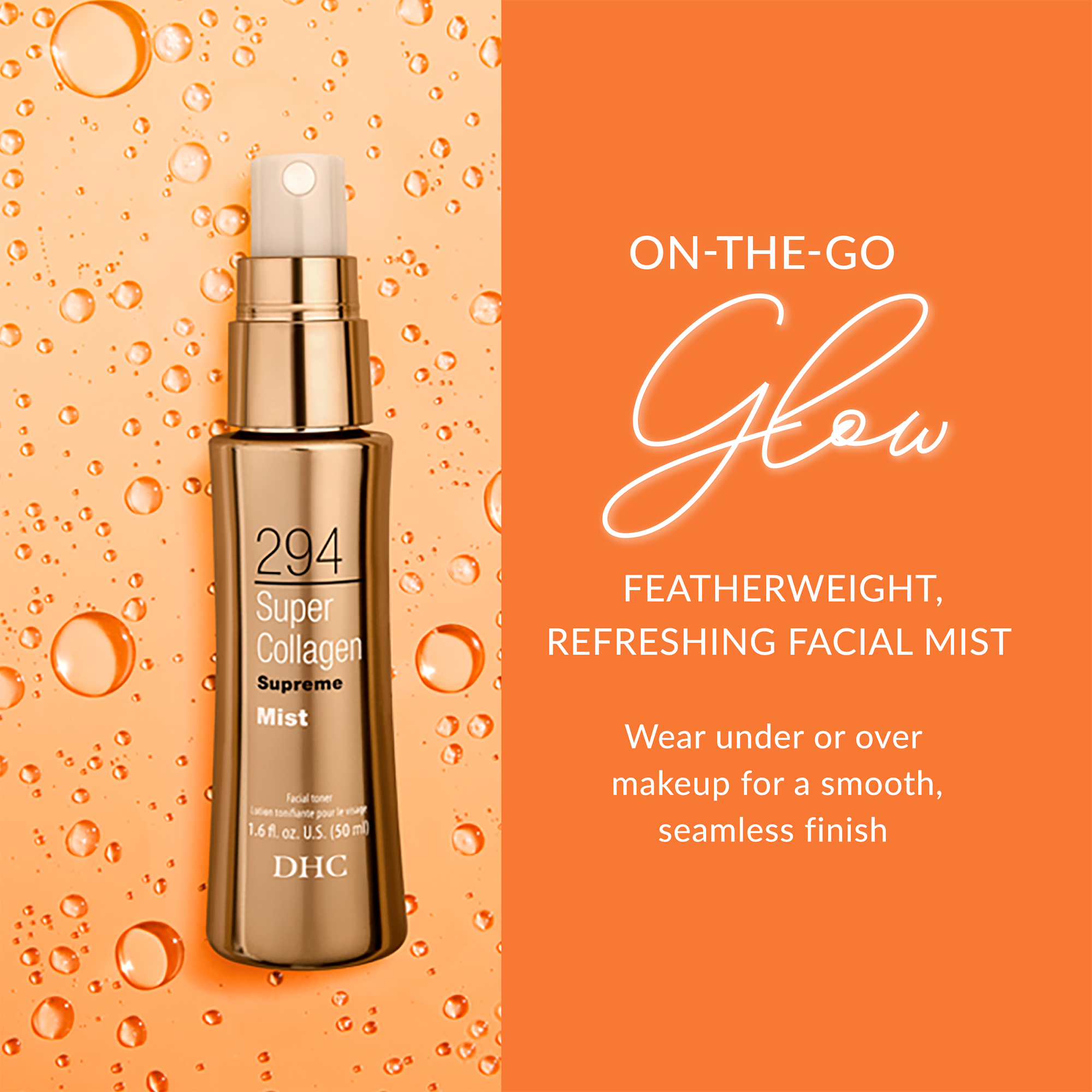 Enjoy a burst of hydration and freshness with a few spritzes of this lightweight facial mist. Versatile and conveniently portable, DHC's Super Collagen Supreme Mist can be used throughout the day as a quick, on-the-go refresh or as part of your morning/evening daily routine.