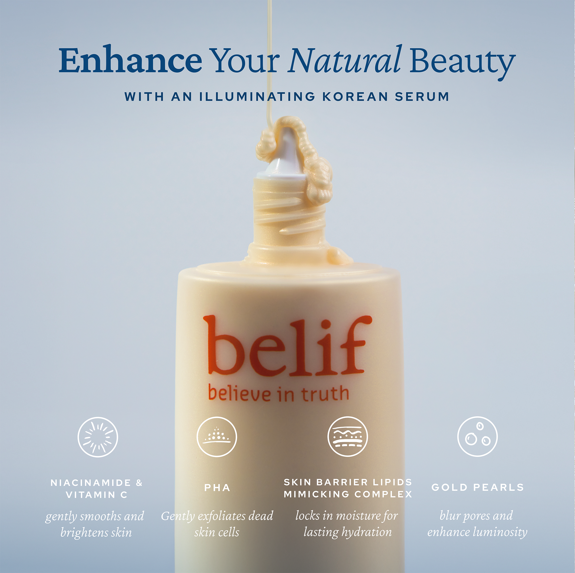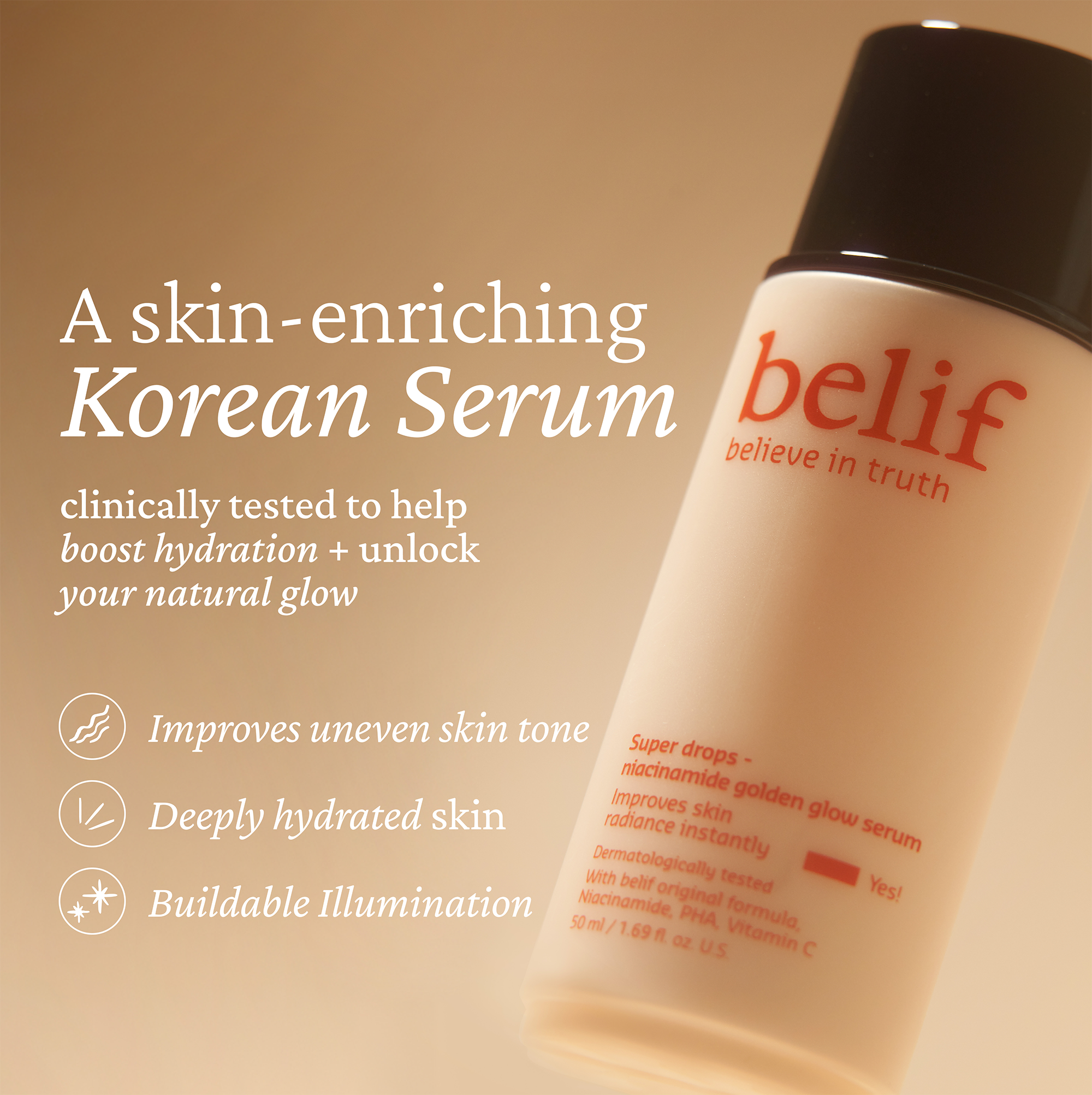 Achieve a good-for-skin glow with belif's Super Drops Niacinamide and Vitamin C Golden Glow Serum. This skin-enriching Korean serum delivers buildable illumination, improves uneven skin tone over time, and boosts hydration for a 촉촉 (chok chok) effect - look and feel of bouncy, plump skin.