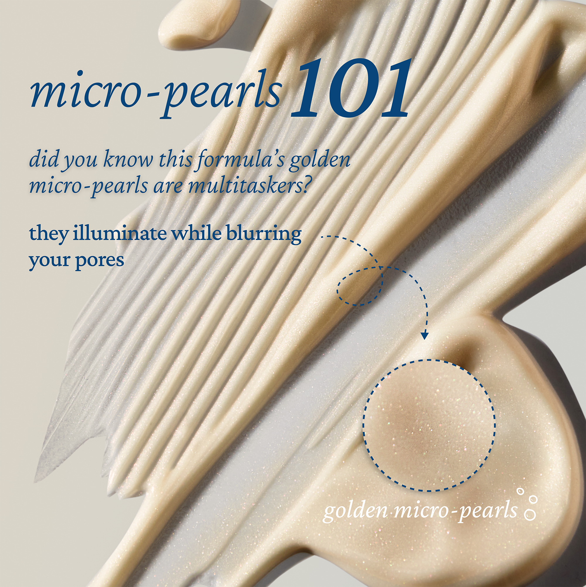 • Gold Pearls: Blurs pores and enhance luminosity