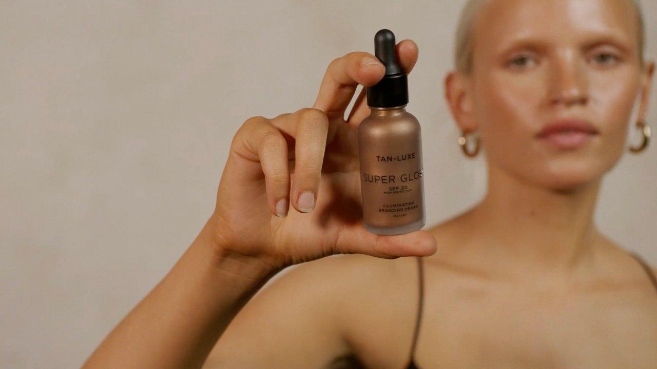 TAN LUXE Super Gloss Instant Bronzing Face Drops with SPF 30 is a lightweight, tinted bronzing serum that fuses skincare, makeup, and sun protection to instantly create a healthy, hydrated, sunkissed glow.