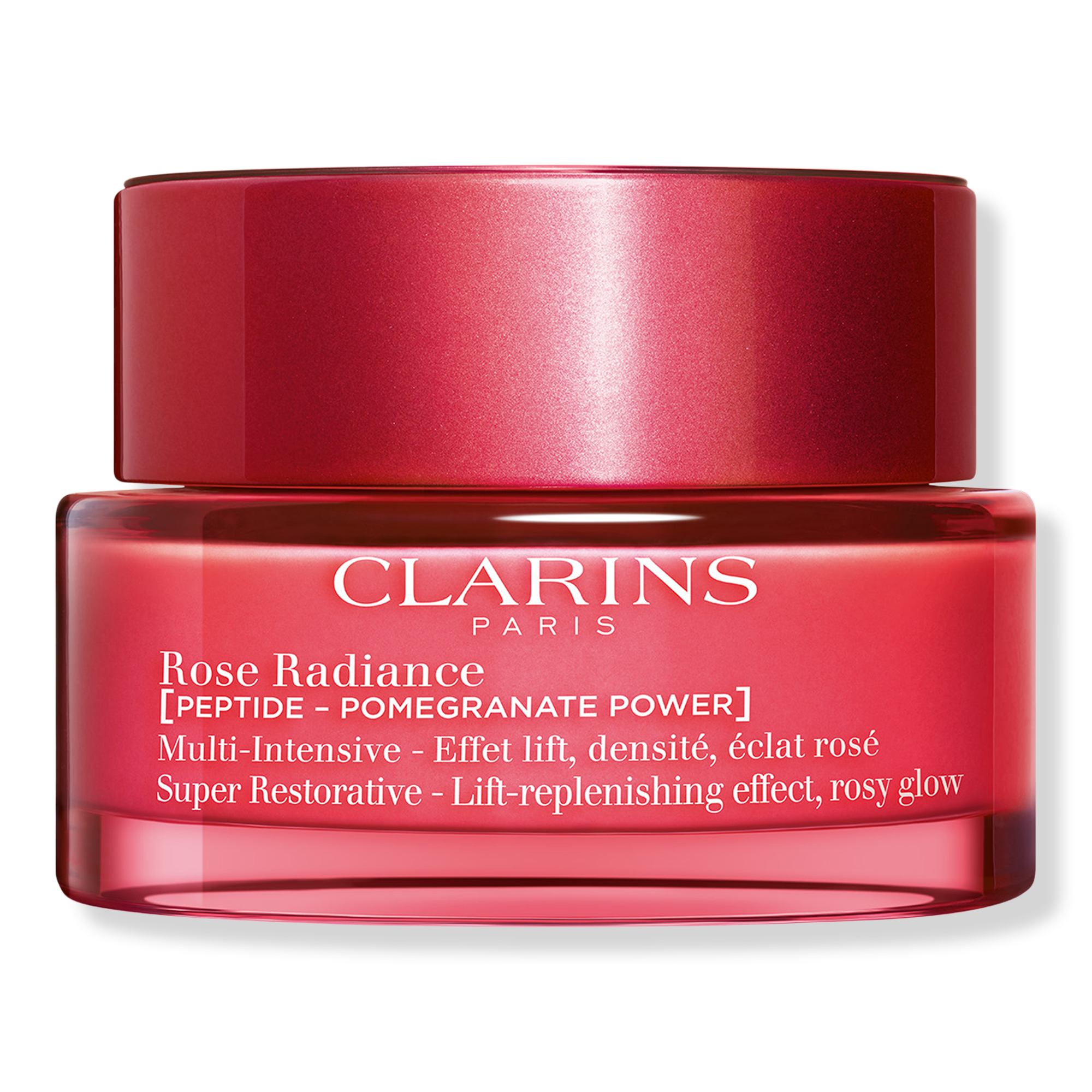 Clarins Super Restorative Rose Radiance Peptide Anti Aging Face Moisturizer a dual-action anti-aging + radiance-boosting cream for mature skin visibly lifts, smoothes, plumps, and evens skin tone with an instant rosy glow.
