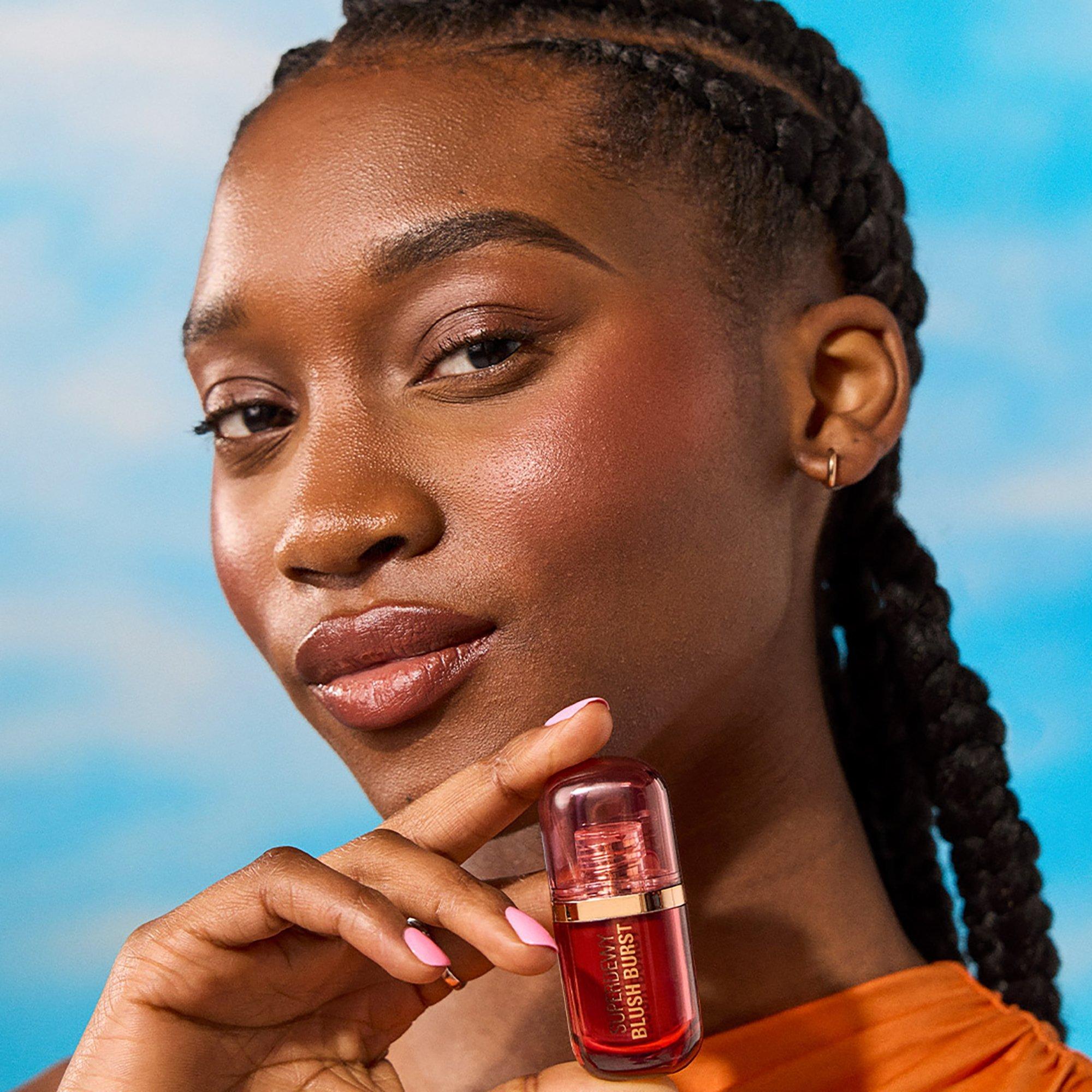 Grab, dab & go with Revolution Beauty Super Dewy Blush Burst, a bitesize burst of juicy color. The hybrid skin-loving serum formula is bursting with peptides and hyaluronic acid for a hydrated, plumped cheek effect.