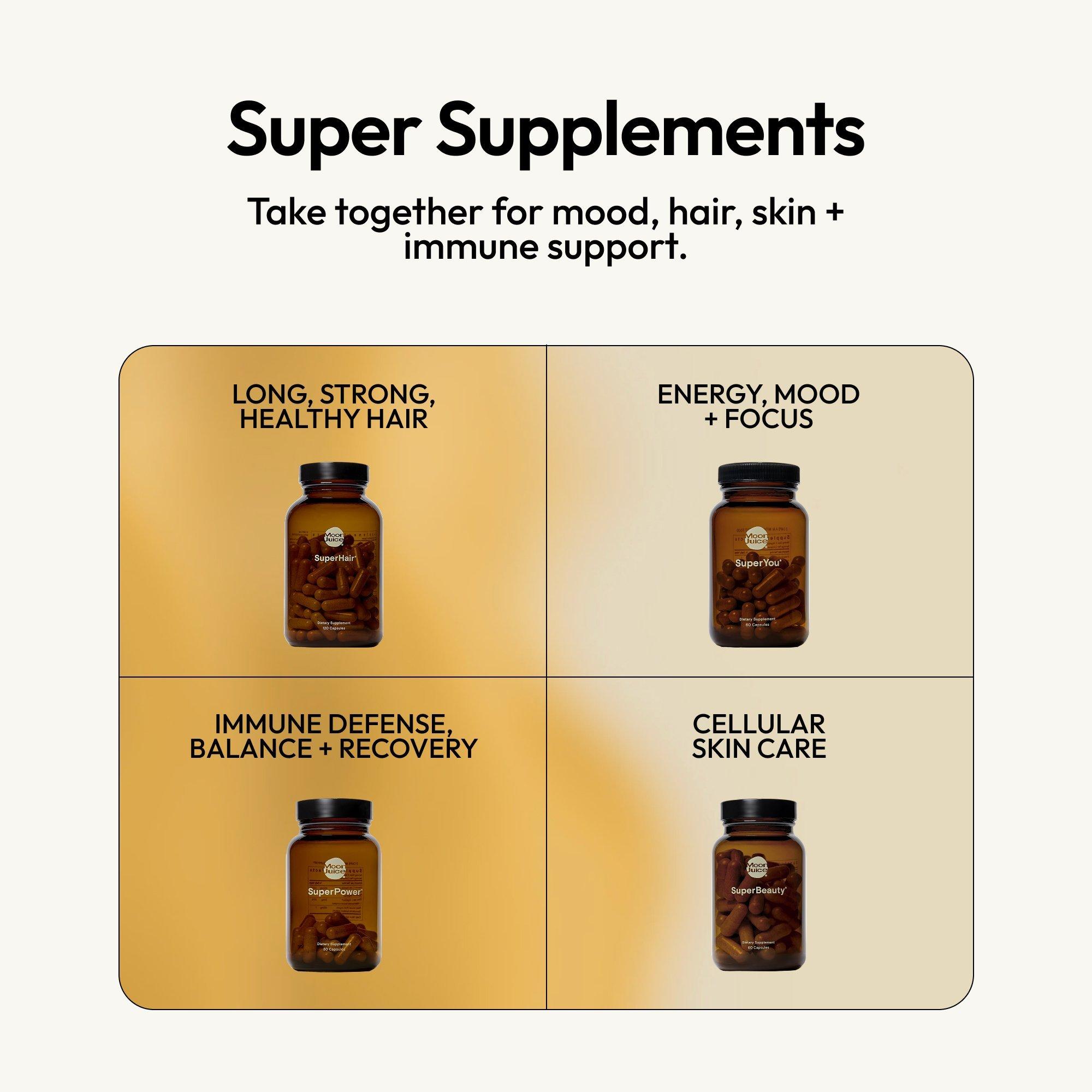 Moon Juice SuperPower Immune Support is a clinical strength blend of 4 immune fundamentals that help activate cells for a quick response, support the body during periods of stress, and balance an overactive immune system.*