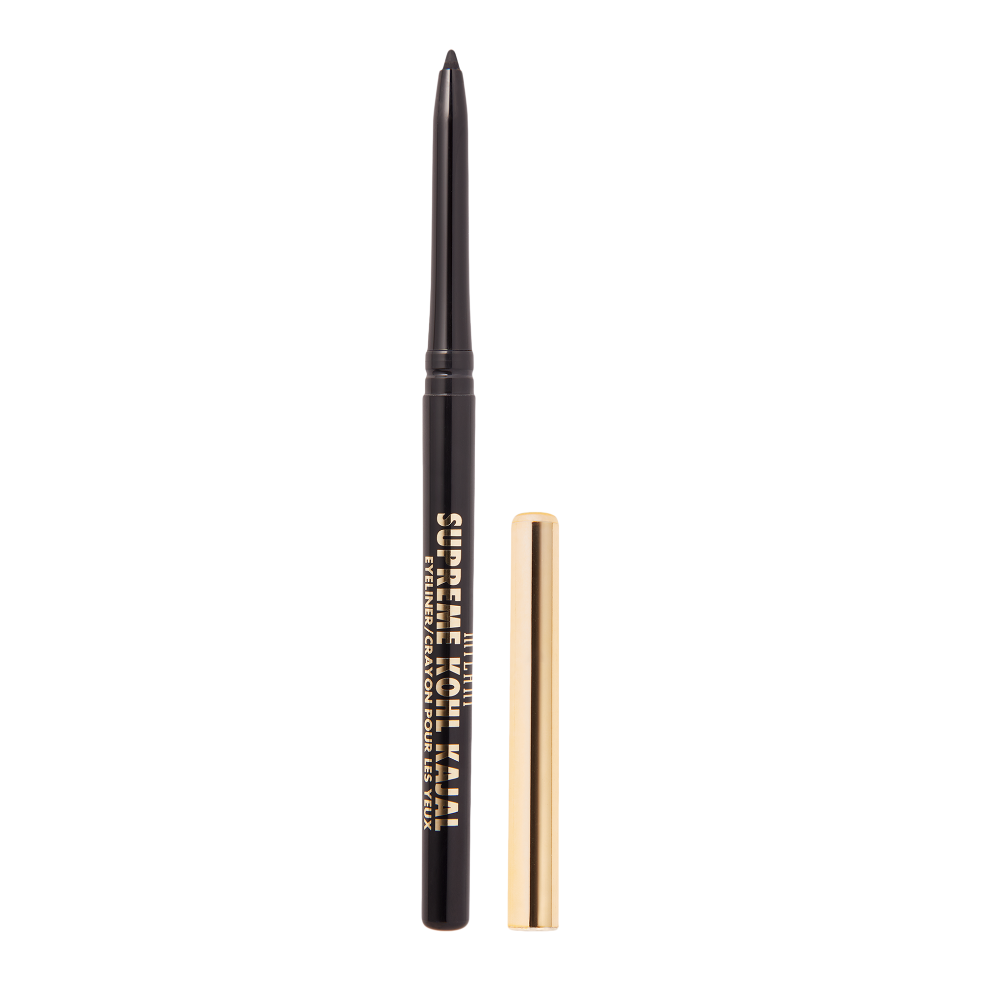 Milani Supreme Kohl Kajal Eyeliner glides seamlessly onto lids to create a precise line or smudged-out smolder with intense, midnight-black pigment.