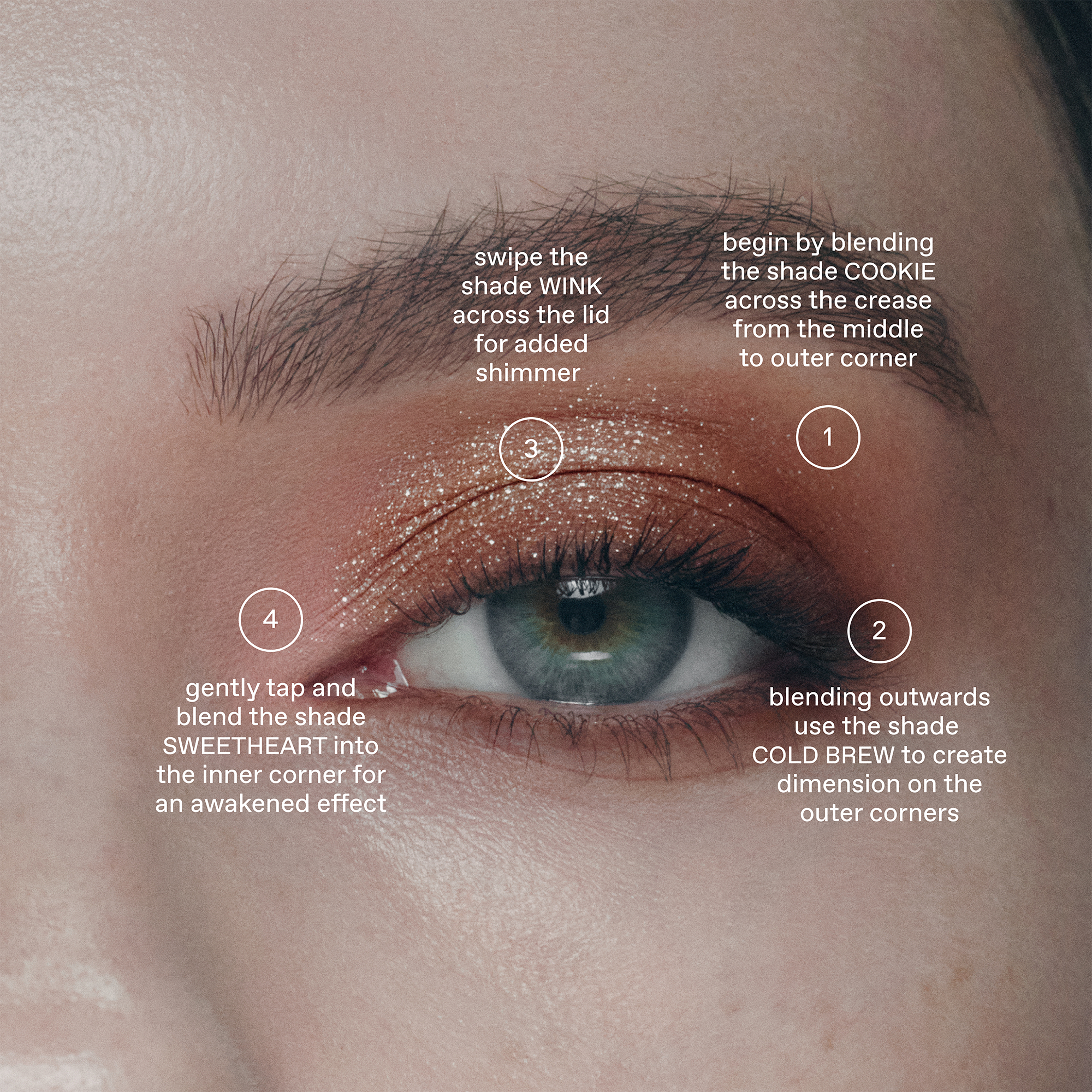 For a soft, diffused shimmer effect, use a single iridescent shade across the lid and swipe into the crease.