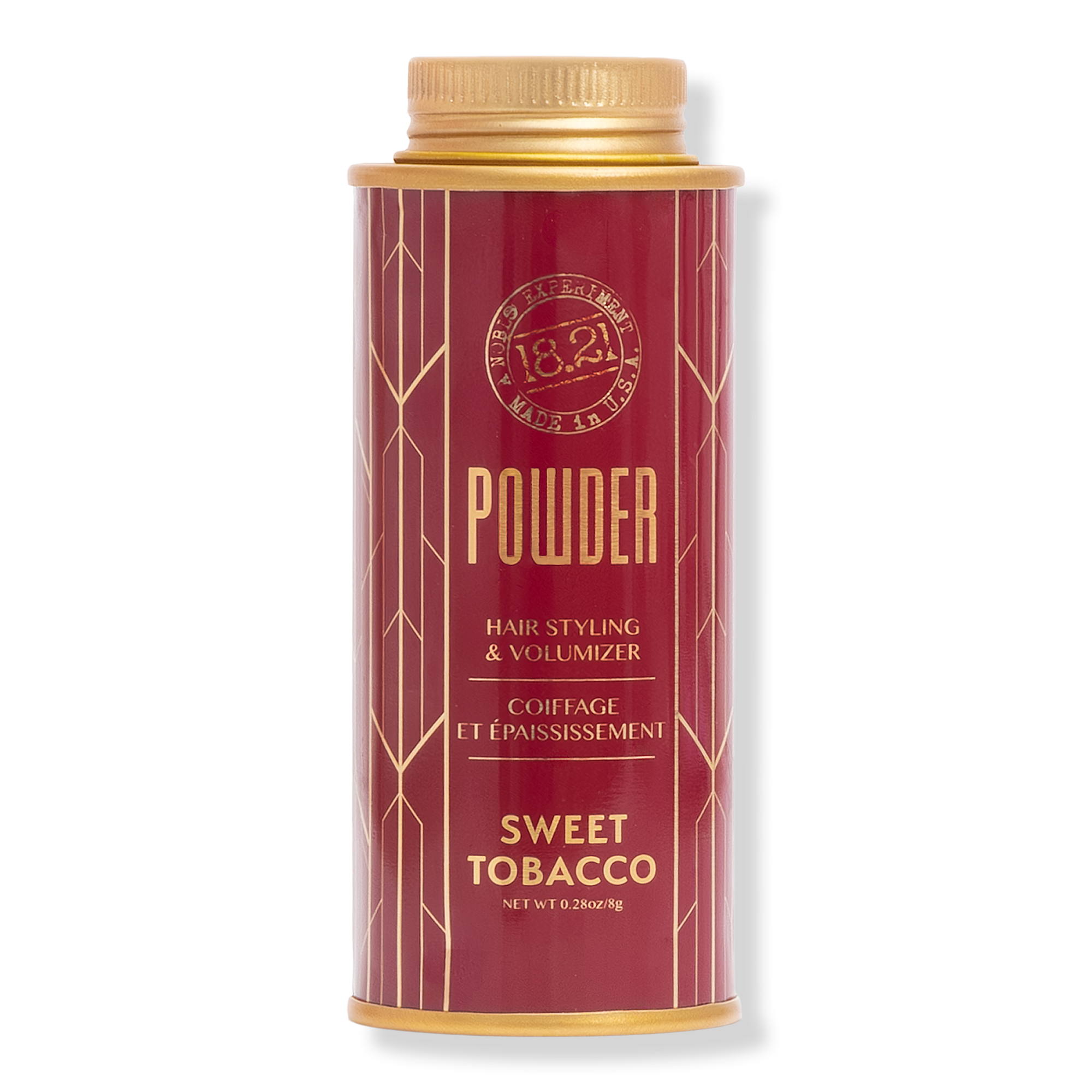 18.21 Man Made Sweet Tobacco Hair Styling Powder. Flexible Hold, no shine, re-workable hair styling powder for all hair types.