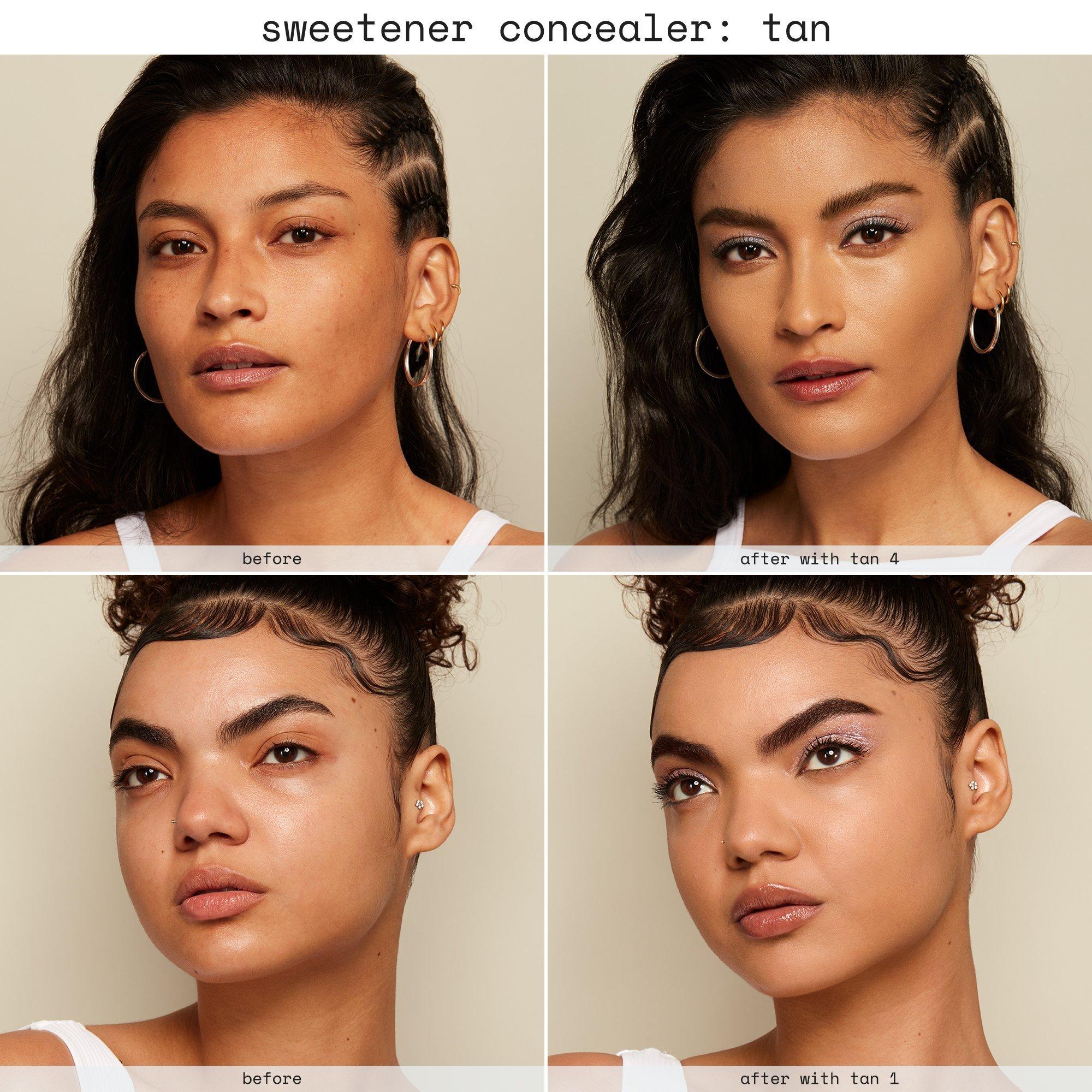r.e.m. beauty sweetener concealer applies with a smooth lightweight veil and can be layered to customized coverage with a soft, matte finish. conceal, correct, highlight, brighten, contour, and carve. touch up or use all over face - every pot is full of multitasking potential.