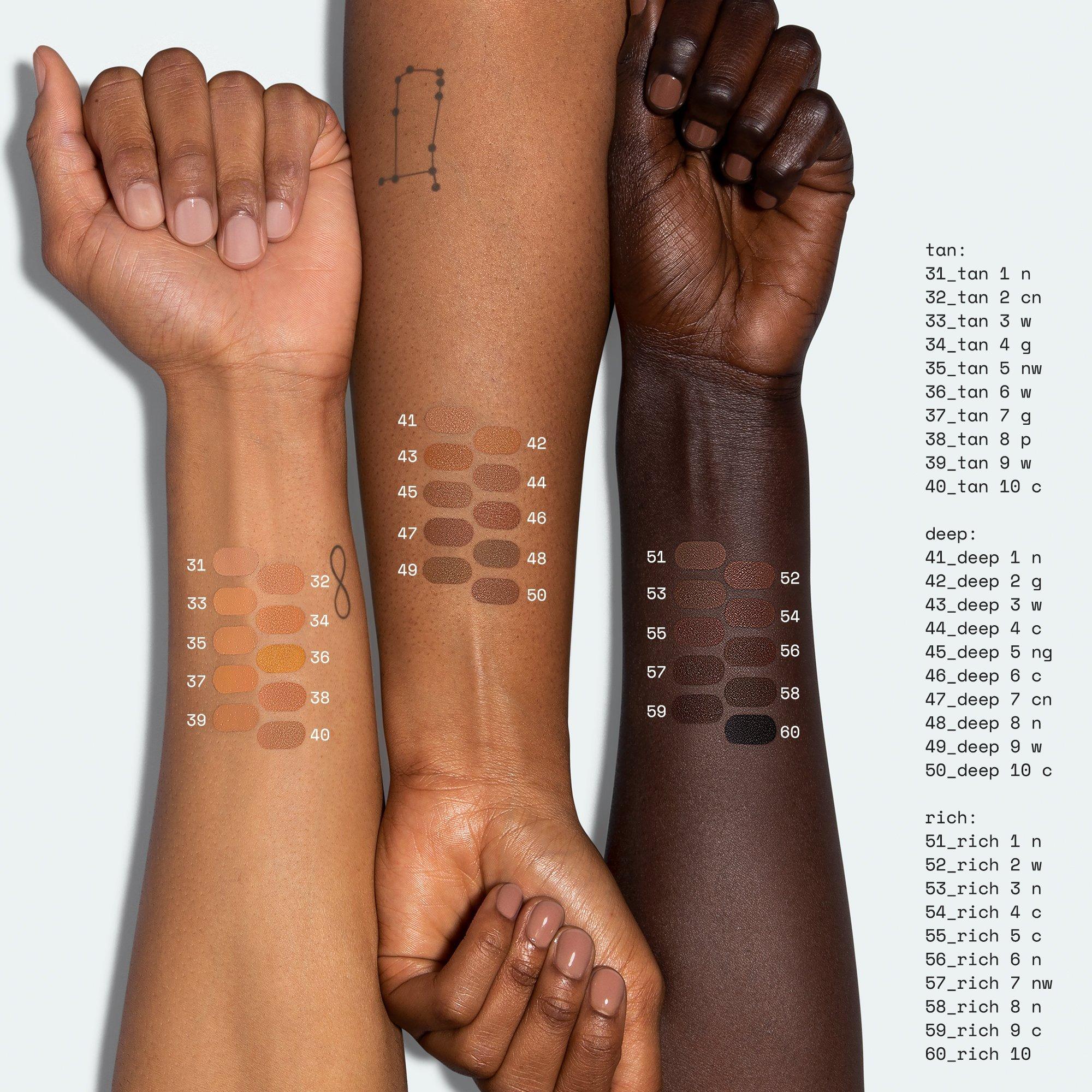 01 finding your shade for all-over concealing: choose a shade closest to your skin tone. identify your shade level (fair-rich) undertone. shades progress in depth as you go from 1-10 within your shade level.
