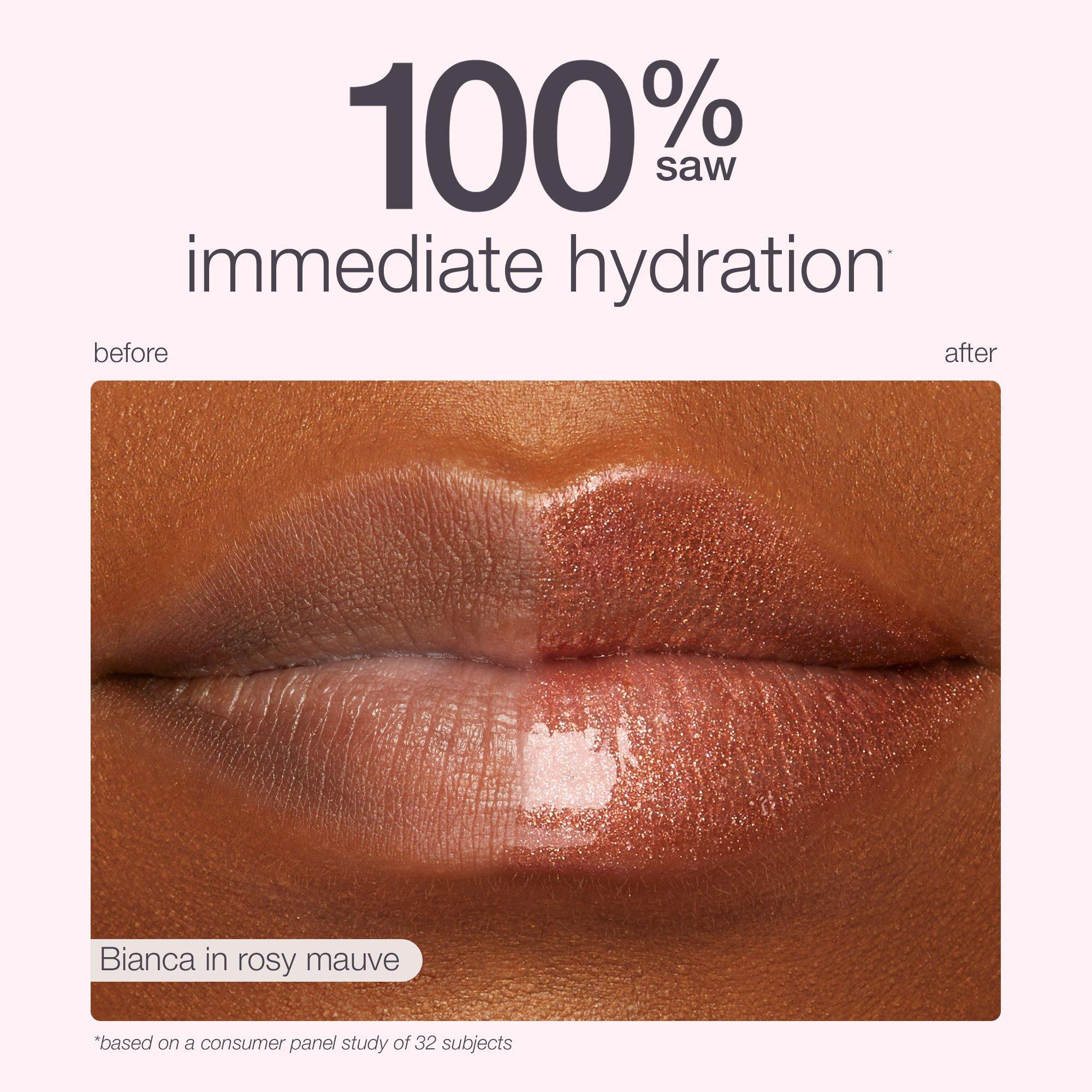 • smoother, juicier-looking lips in secs​: 100% saw more plump lips* & immediate hydration