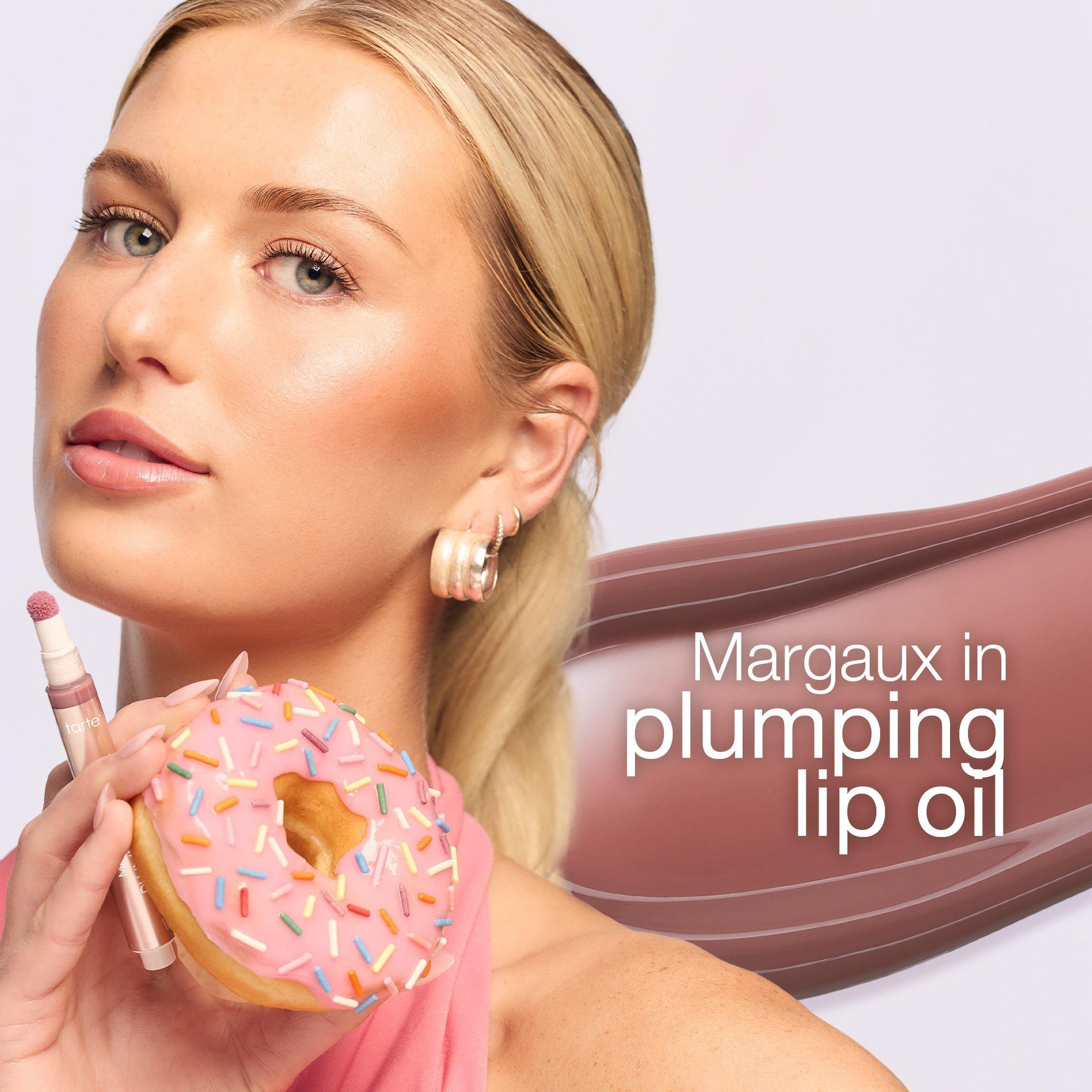 This limited-edition tarte x Dunkin' Vanilla Icing Maracuja Juicy Plumping Lip Oil features a delicious vanilla icing scent + mauve shade.