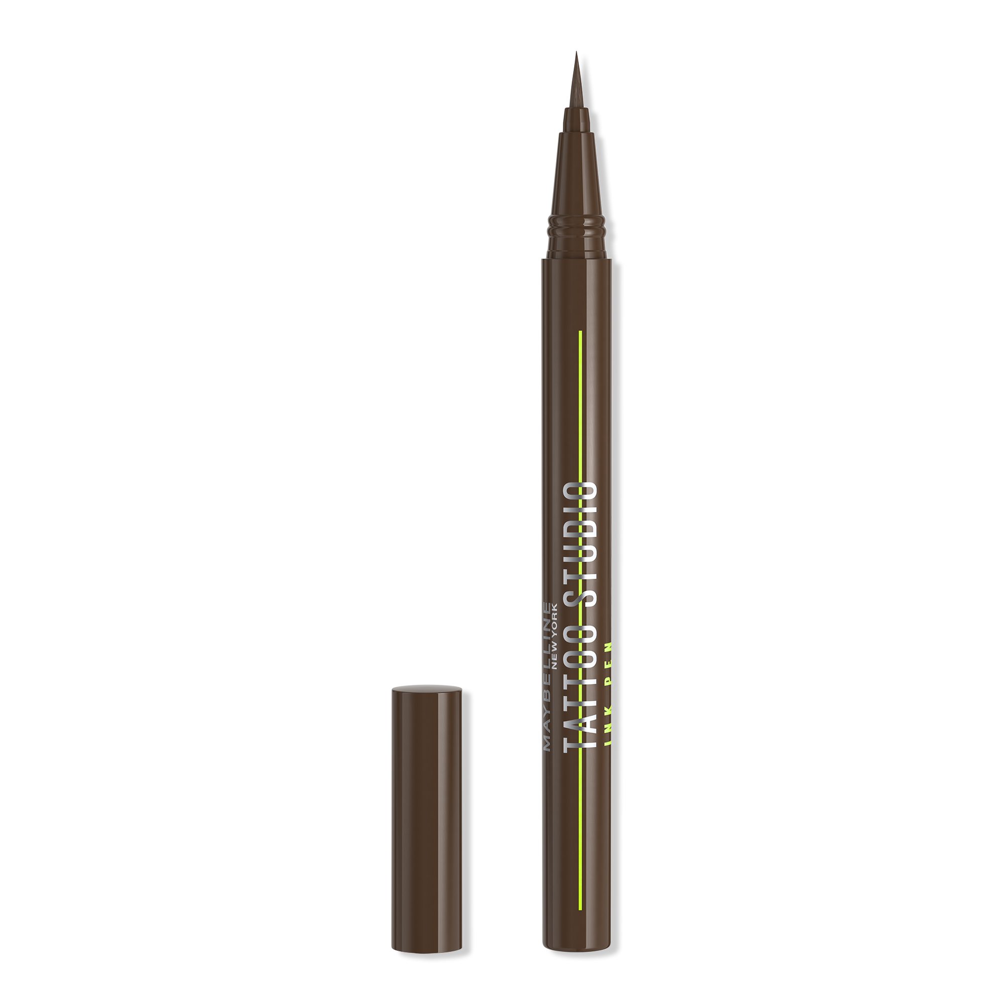 Maybelline New York's Tattoo Studio Ink Pen Eyeliner withstands it all. This liquid liner has Maybelline's darkest pigments for intense tattoo impact and up to 24HR wear. It's waterproof, smudge, flake & fade resistant - with no animal derived ingredients.