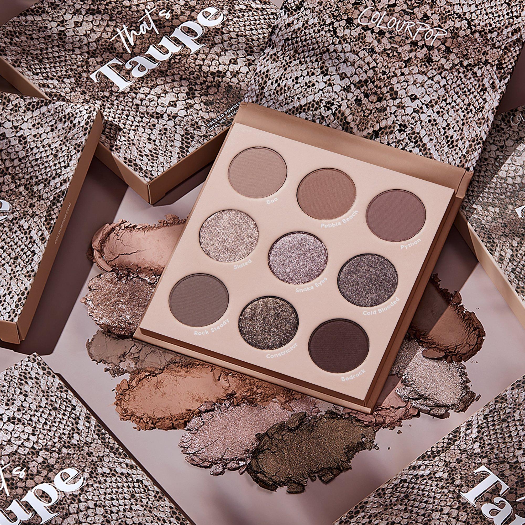 ColourPop's That's Taupe Pressed Powder Palette is full of cool, neutral taupe shadows in matte and metallic finishes to create the most flattering looks from smokey to every day glam.