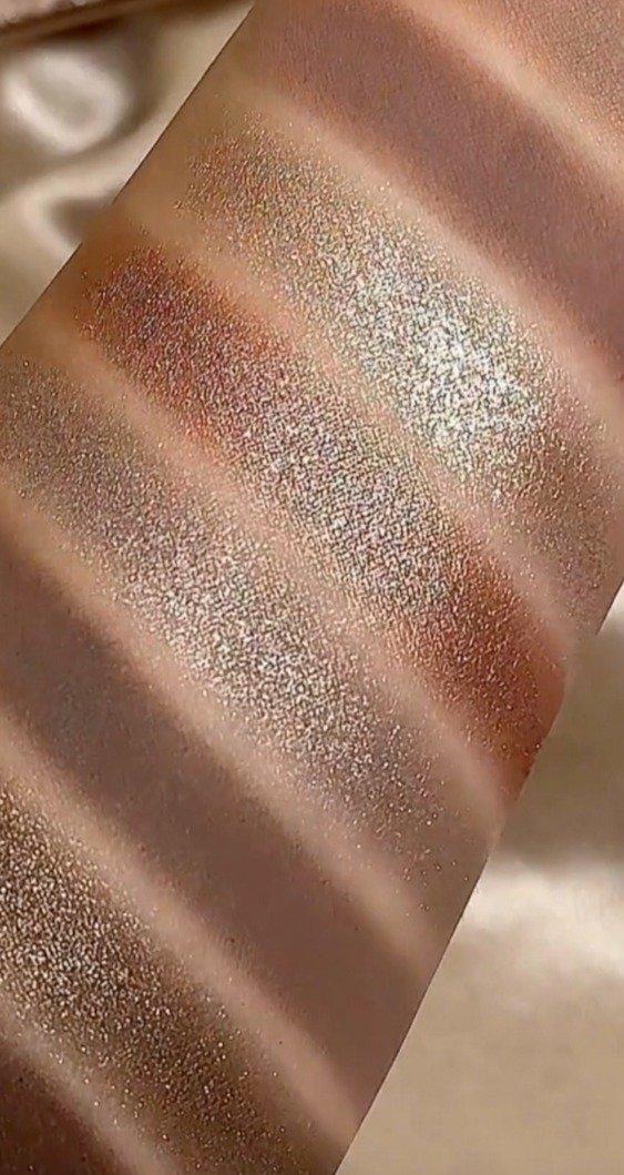 • Middle Row: Slated (ultra-metallic icy taupe with shimmering silver flecks), Snake Eyes (metallic midtone rosey taupe), Cold Blooded (metallic silver taupe)