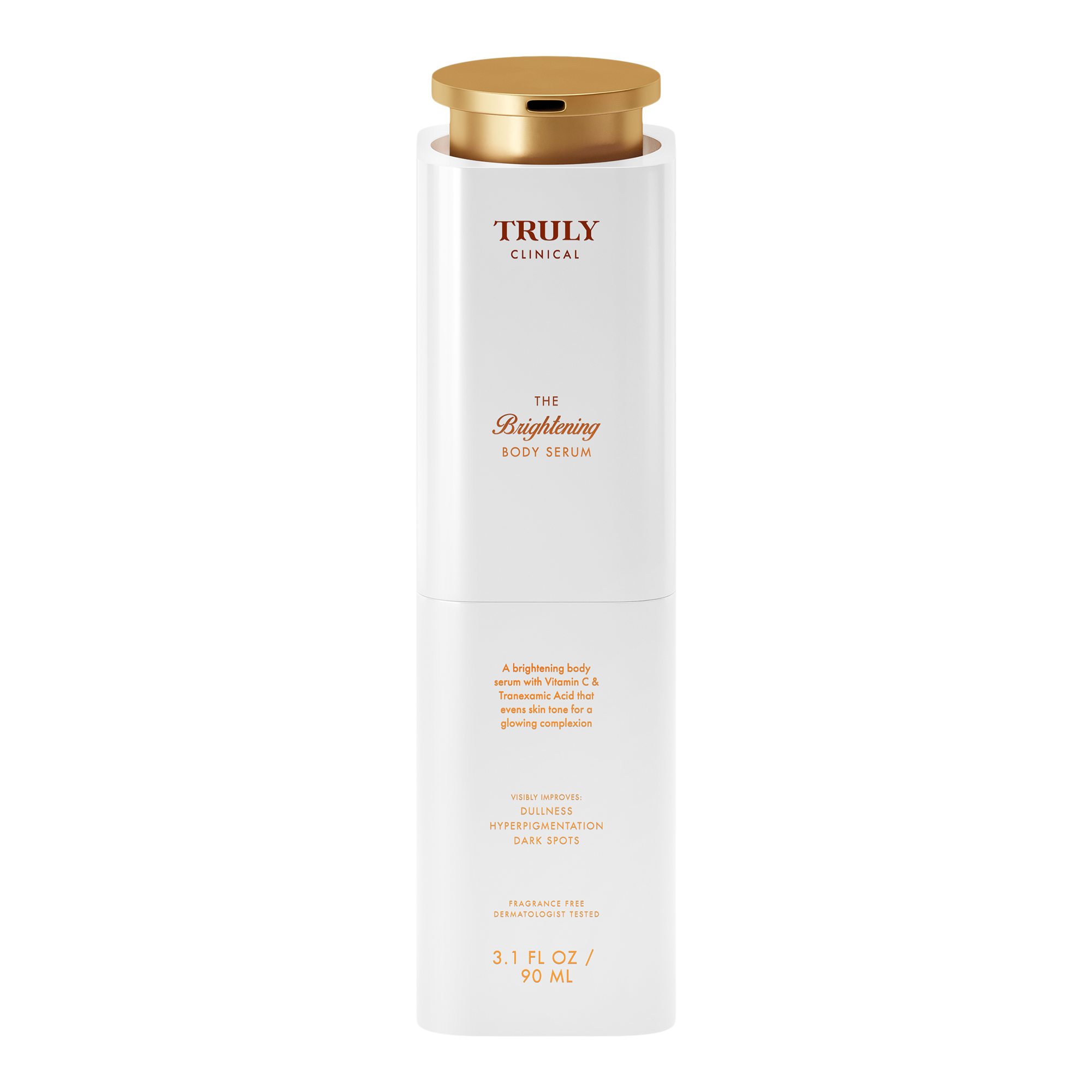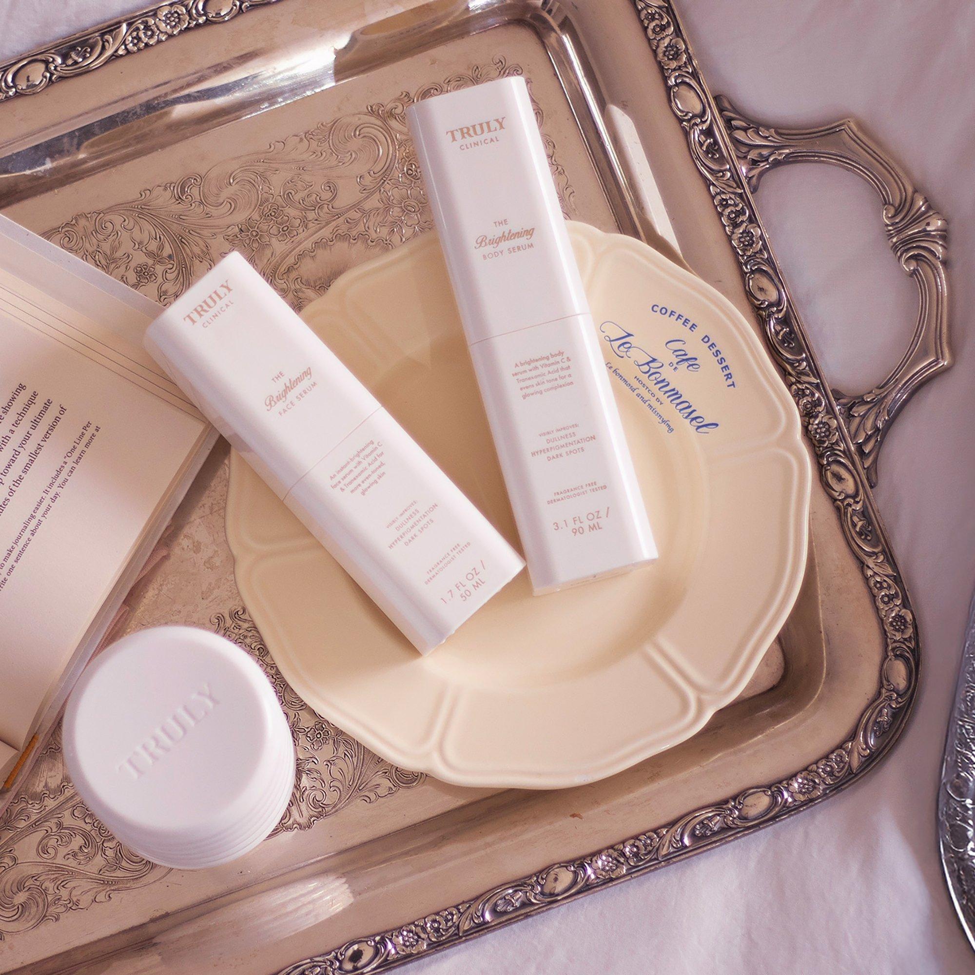 Truly’s The Brightening Body Serum blends vitamin C & tranexamic acid to brighten dark spots, even skin tone, and boost overall radiance.