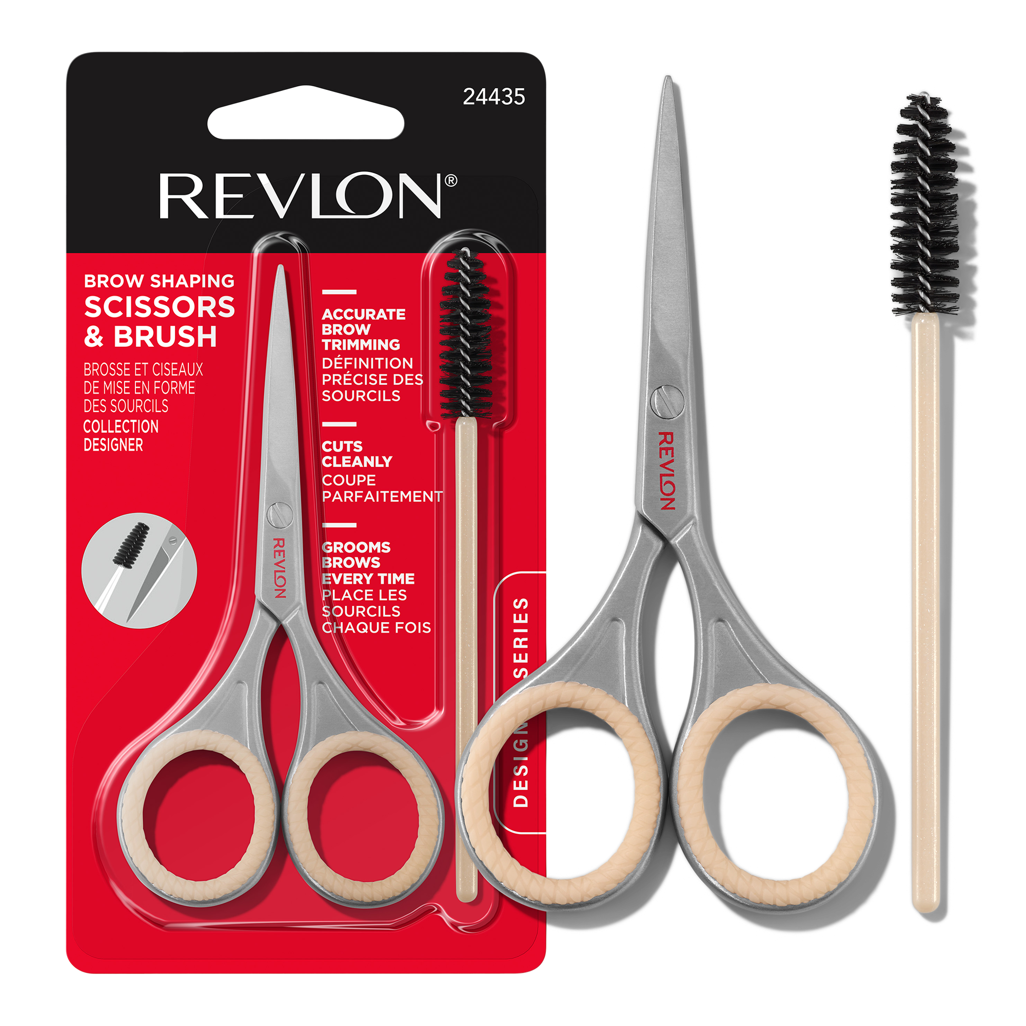 Get instant beautification with the Revlon Designer Series Brow Set. This scissor + spoolie brush duo trims, shapes and grooms your eyebrows to perfection - safely, cleanly and accurately.