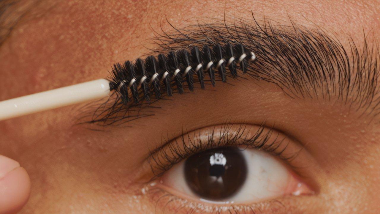 Comb your eyebrow hairs up with the spoolie brush and hold them in place. Use your eyebrow scissors to snip at only the longest hairs.