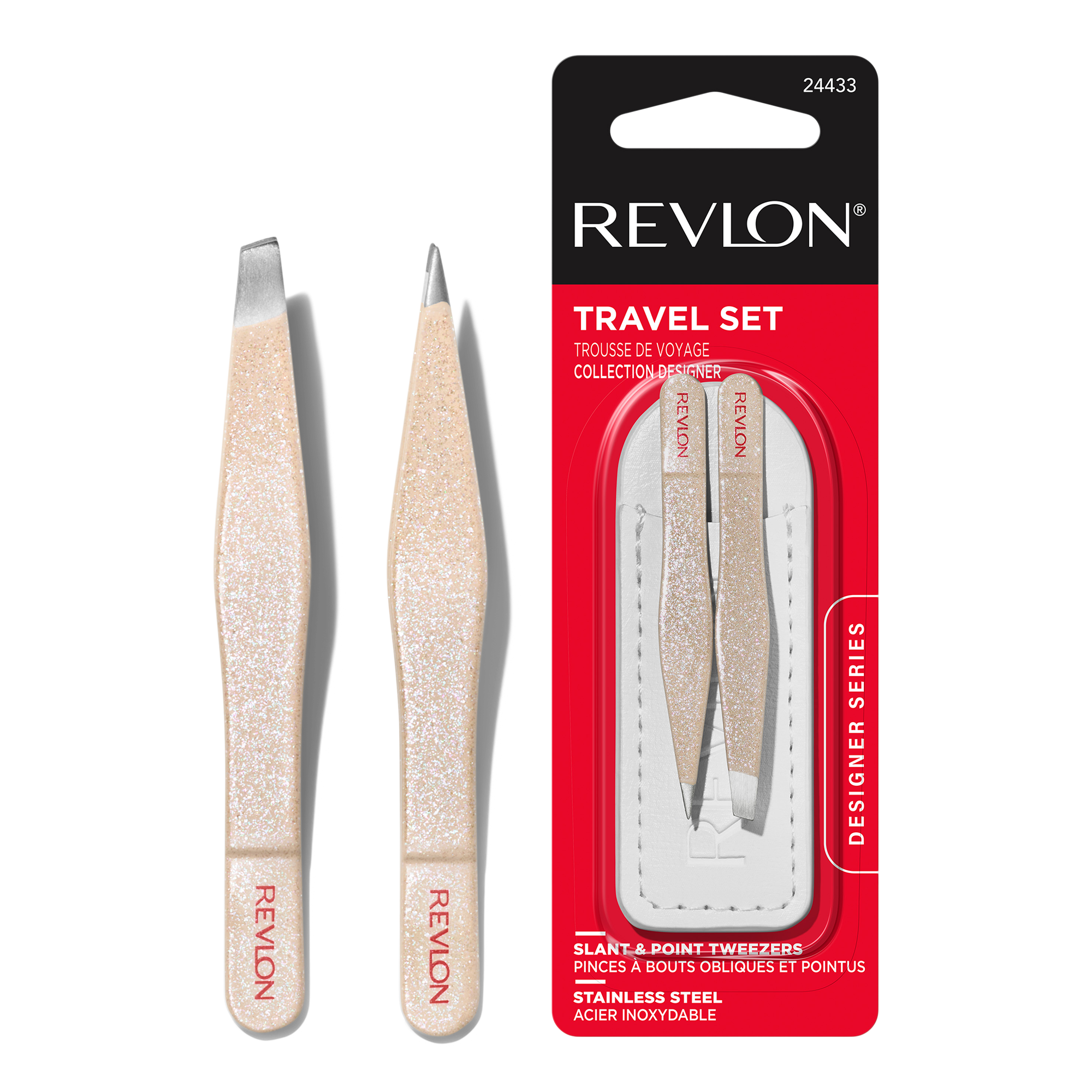 Get instant beautification with the Revlon Designer Series Mini Tweezer Travel Set. The stylishly designed set makes it easy and convenient to tweeze fine and coarse hairs on the go.