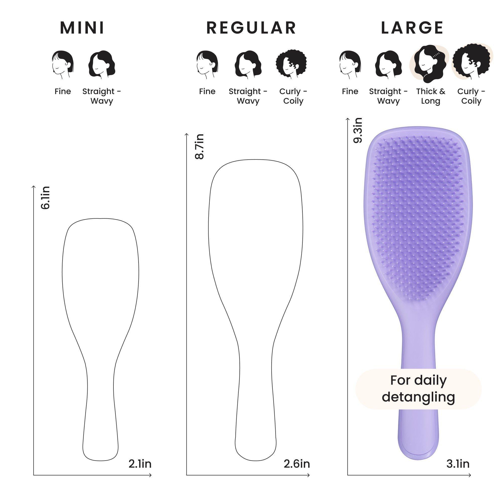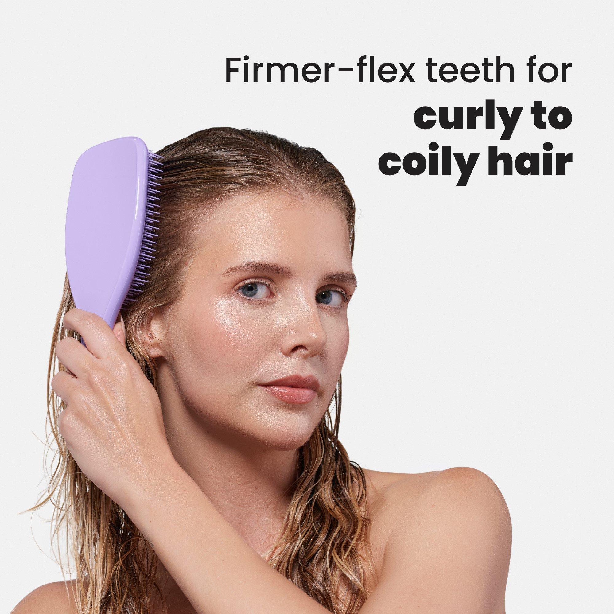 Gone are the days of long (sometimes painful) detangling sessions. Instead, enjoy an easier wash day with the help of Tangle Teezer's Naturally Curly Large Ultimate Detangler Hairbrush for Curly to Coily Hair and its two-tiered teeth technology.