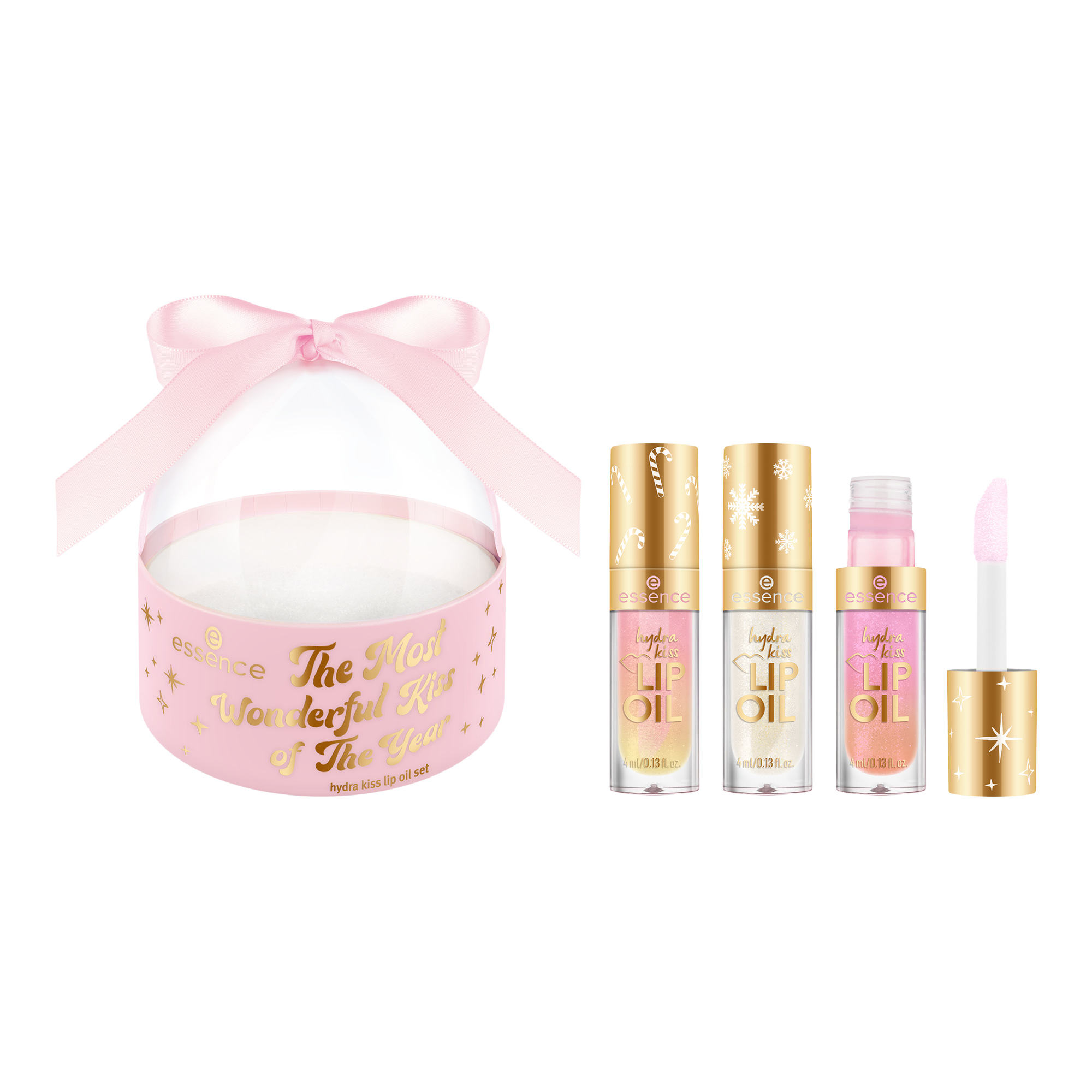 Get mistletoe-ready with the Essence The Most Wonderful Kiss of the Year Hydra Kiss Lip Oil Gift Set! This festive trio features three limited-edition, shimmer-packed lip oils in a snow globe-inspired gift dome. Each has its own adorable design & delivers high-shine, non-sticky hydration.