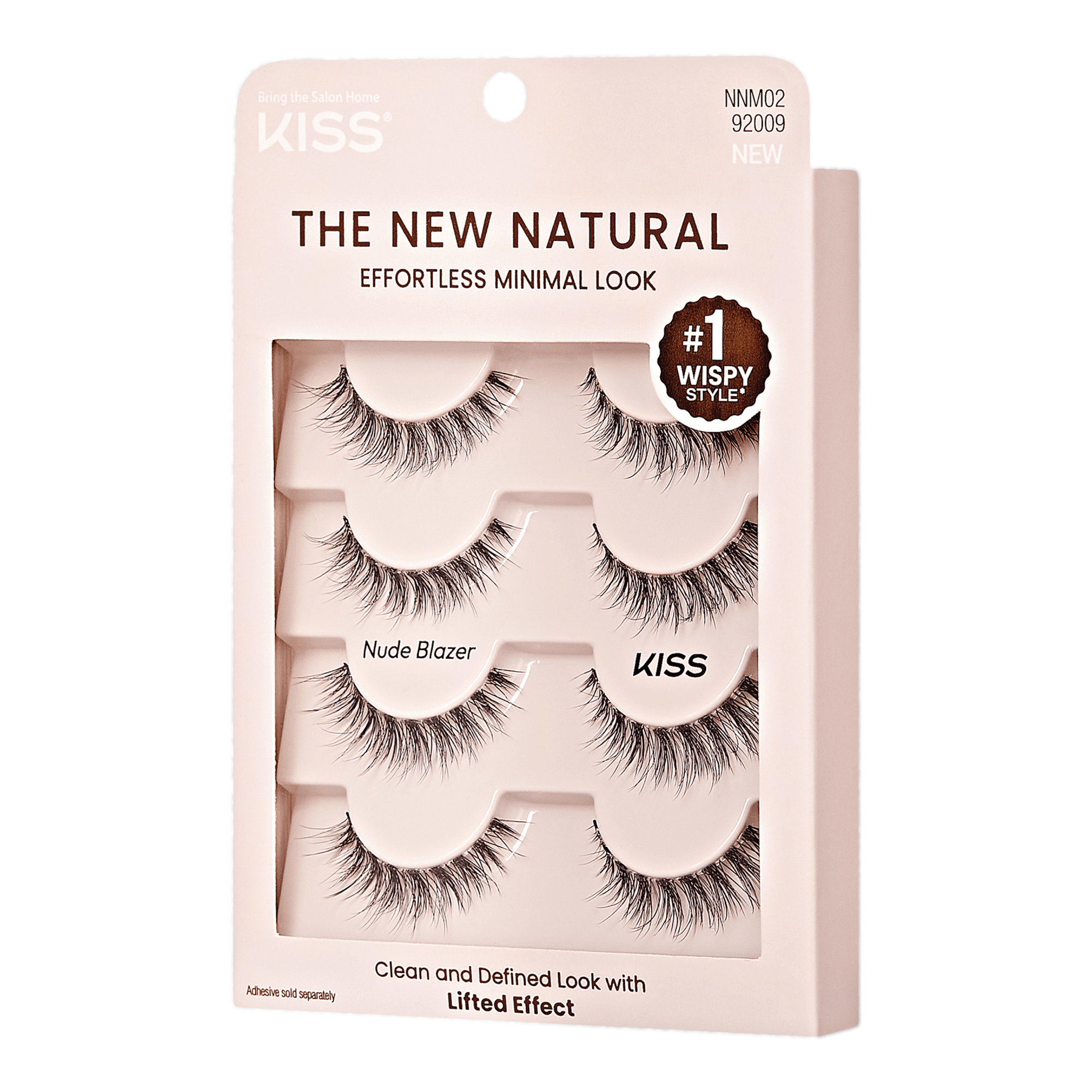 KISS presents The New Natural False Eyelashes, a lash collection, designed for a "no makeup, makeup" aesthetic. This trend is about flawlessly imperfect lashes, featuring uneven, sparsely distributed lash patterns and a thinner lash band for a remarkably natural effect.