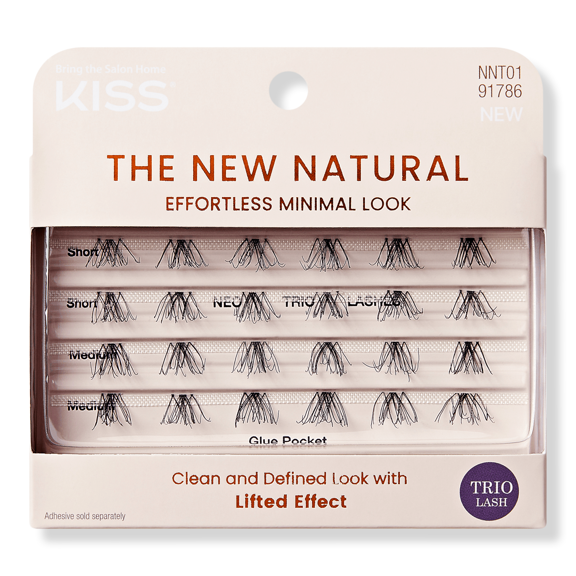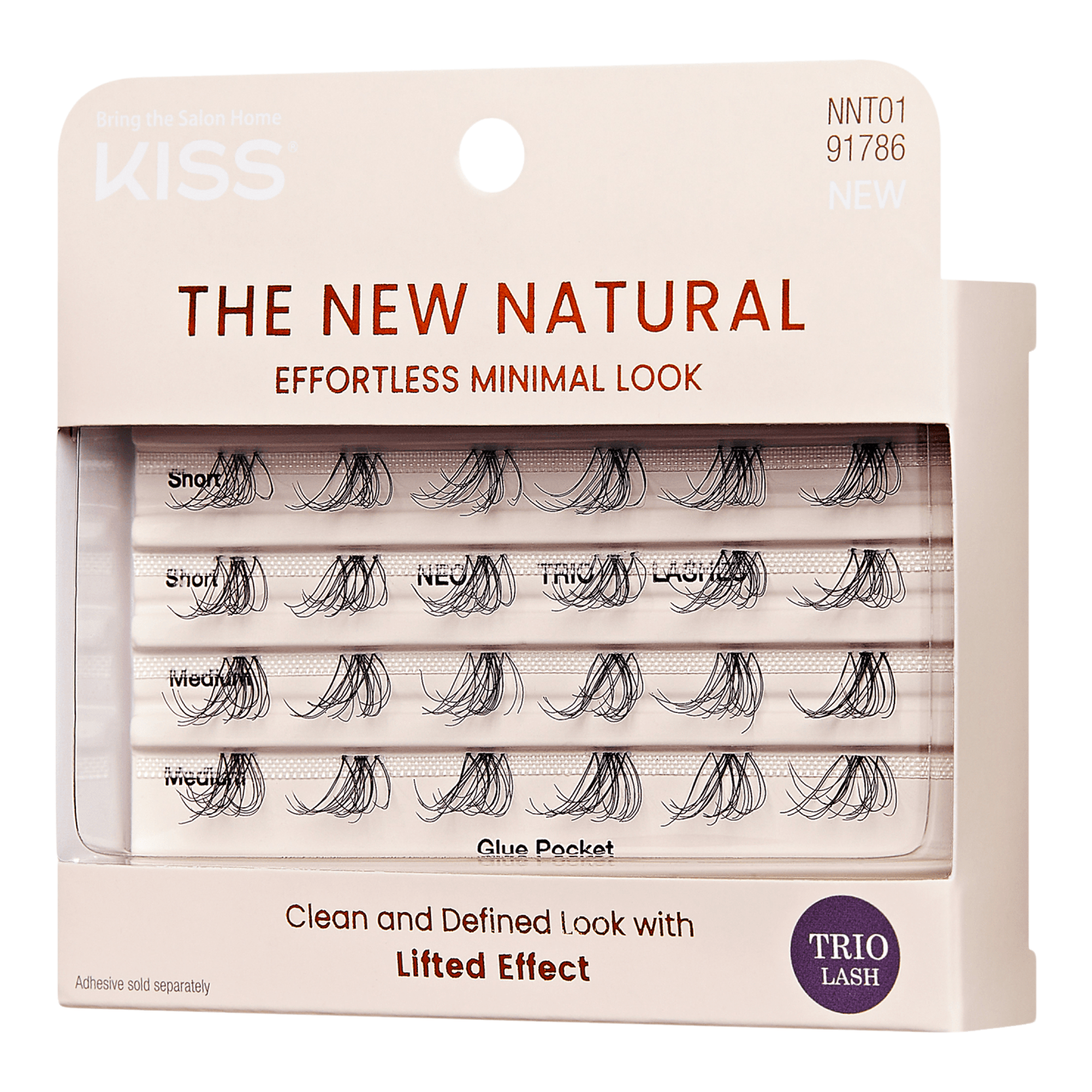 KISS presents The New Natural False Eyelashes, a lash collection, designed for a "no makeup, makeup" aesthetic. This trend is about flawlessly imperfect lashes, featuring uneven, sparsely distributed lash patterns and a thinner lash band for a remarkably natural effect.
