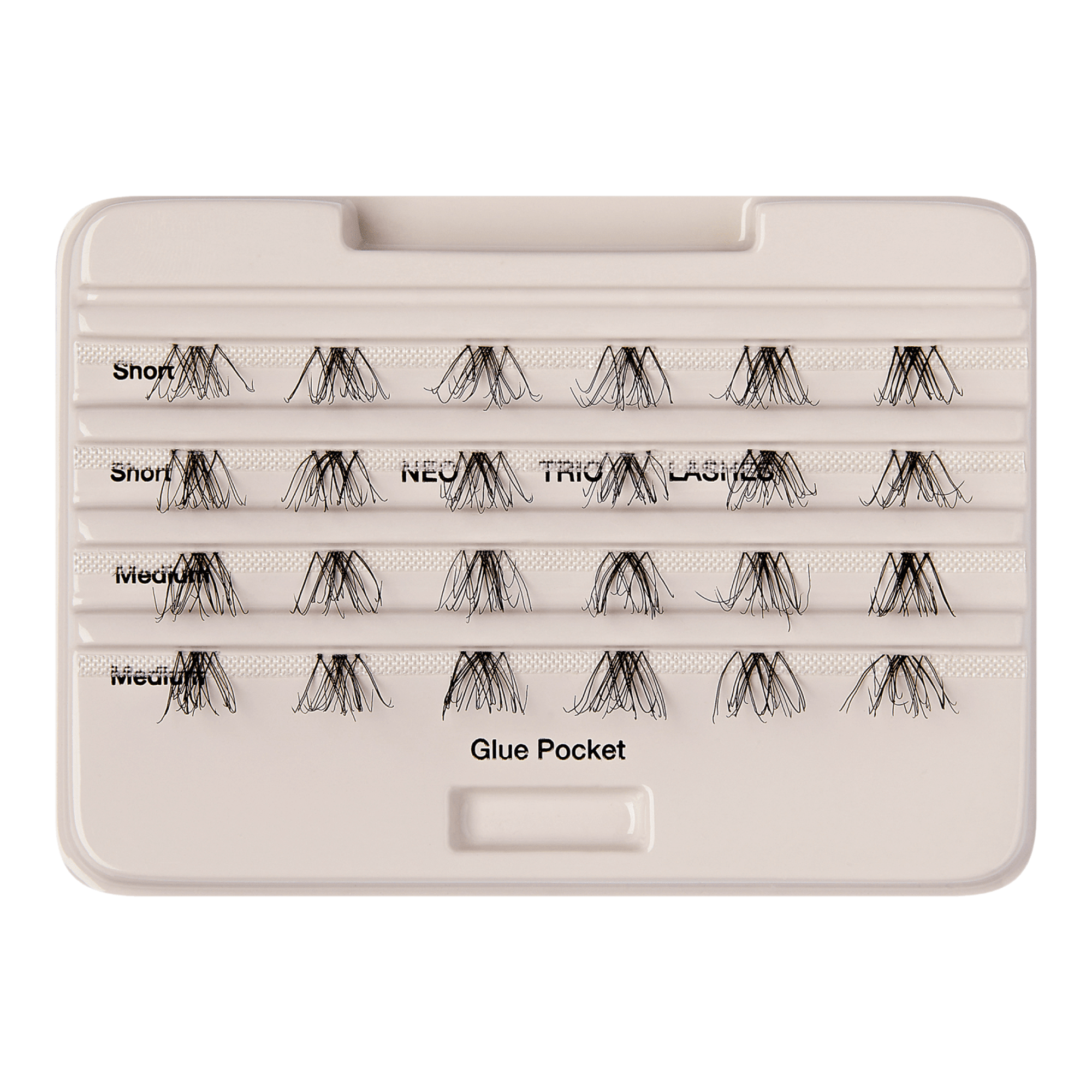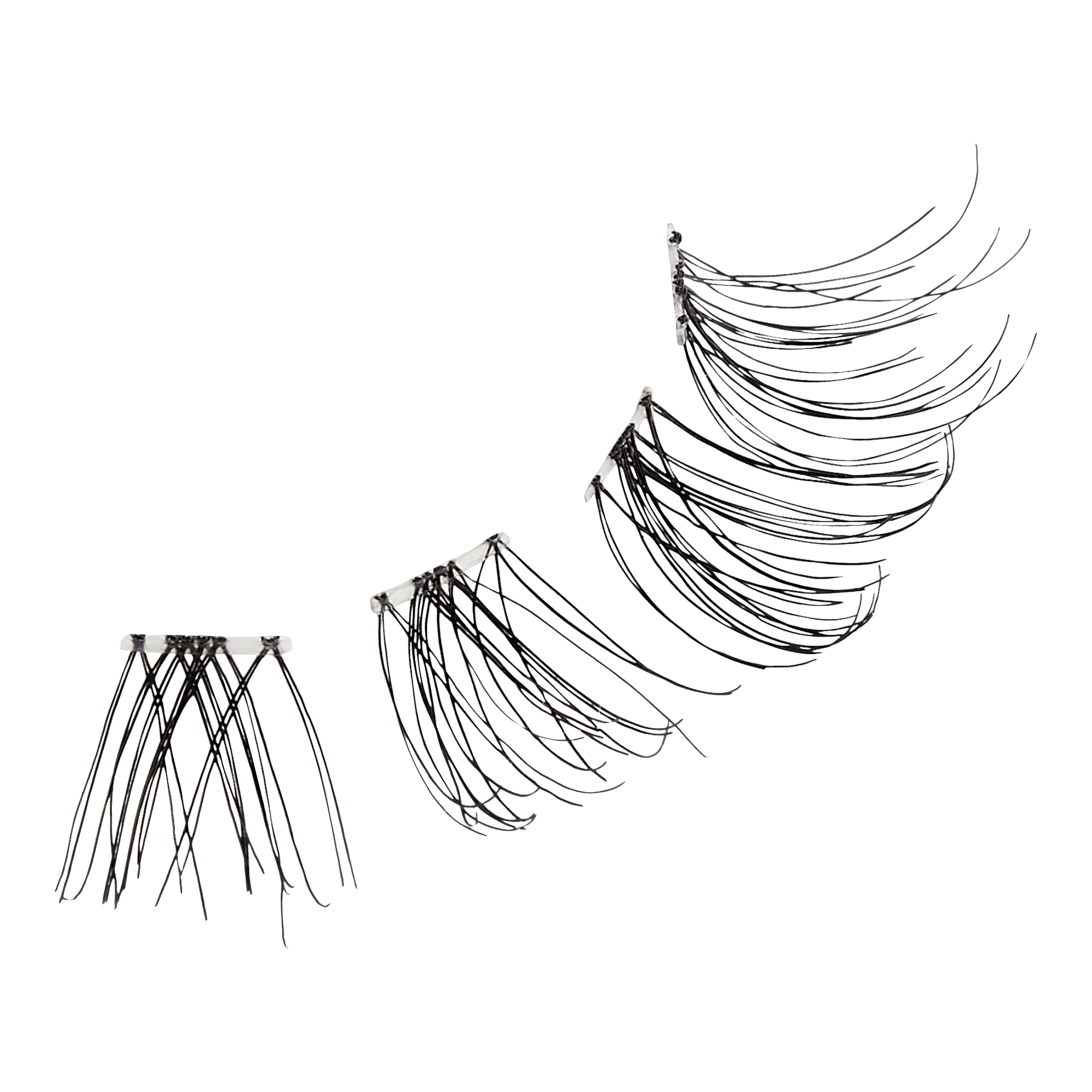 3.From the outer corner, place trio lash on lash line. Hold, allowing adhesive to dry. Gradually work toward the other corner until lashes blend.