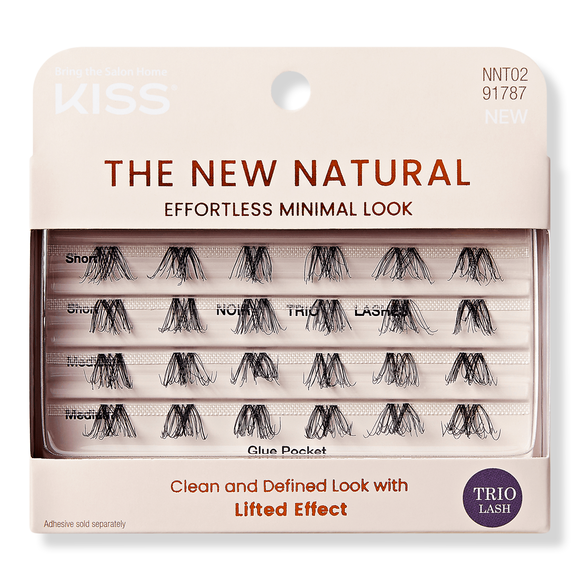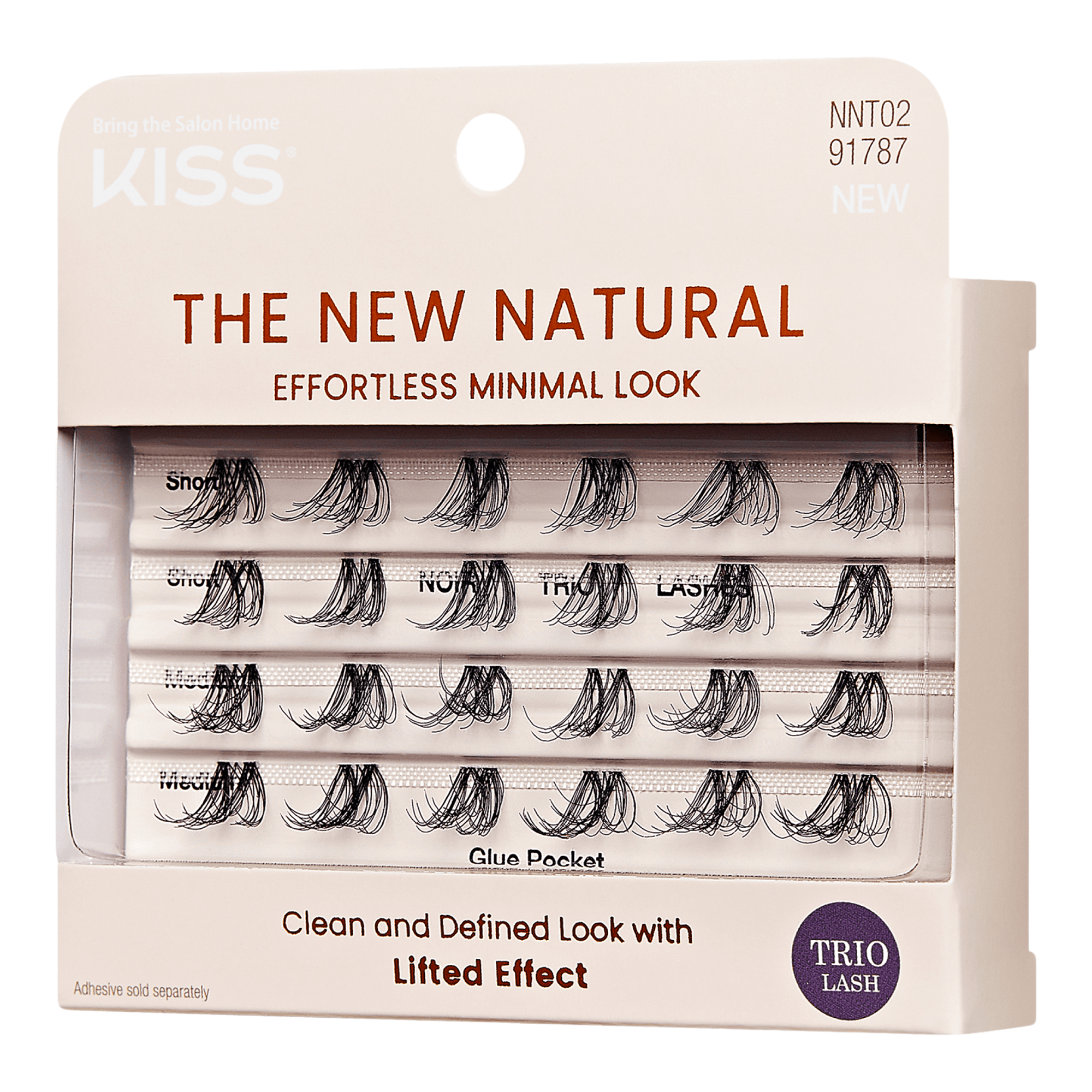 KISS presents The New Natural False Eyelashes, a lash collection, designed for a "no makeup, makeup" aesthetic. This trend is about flawlessly imperfect lashes, featuring uneven, sparsely distributed lash patterns and a thinner lash band for a remarkably natural effect.