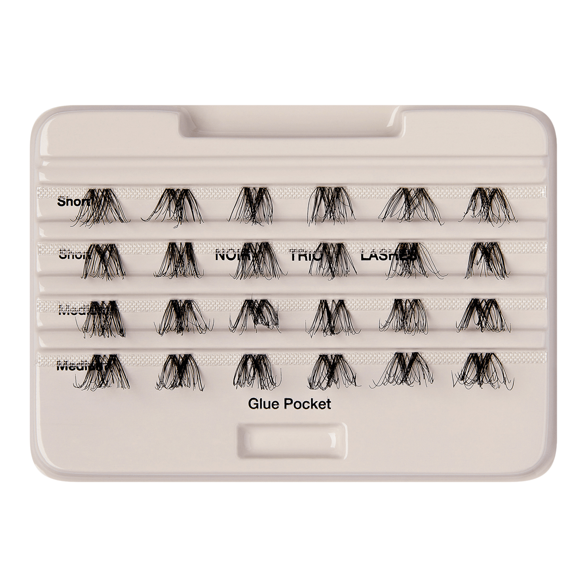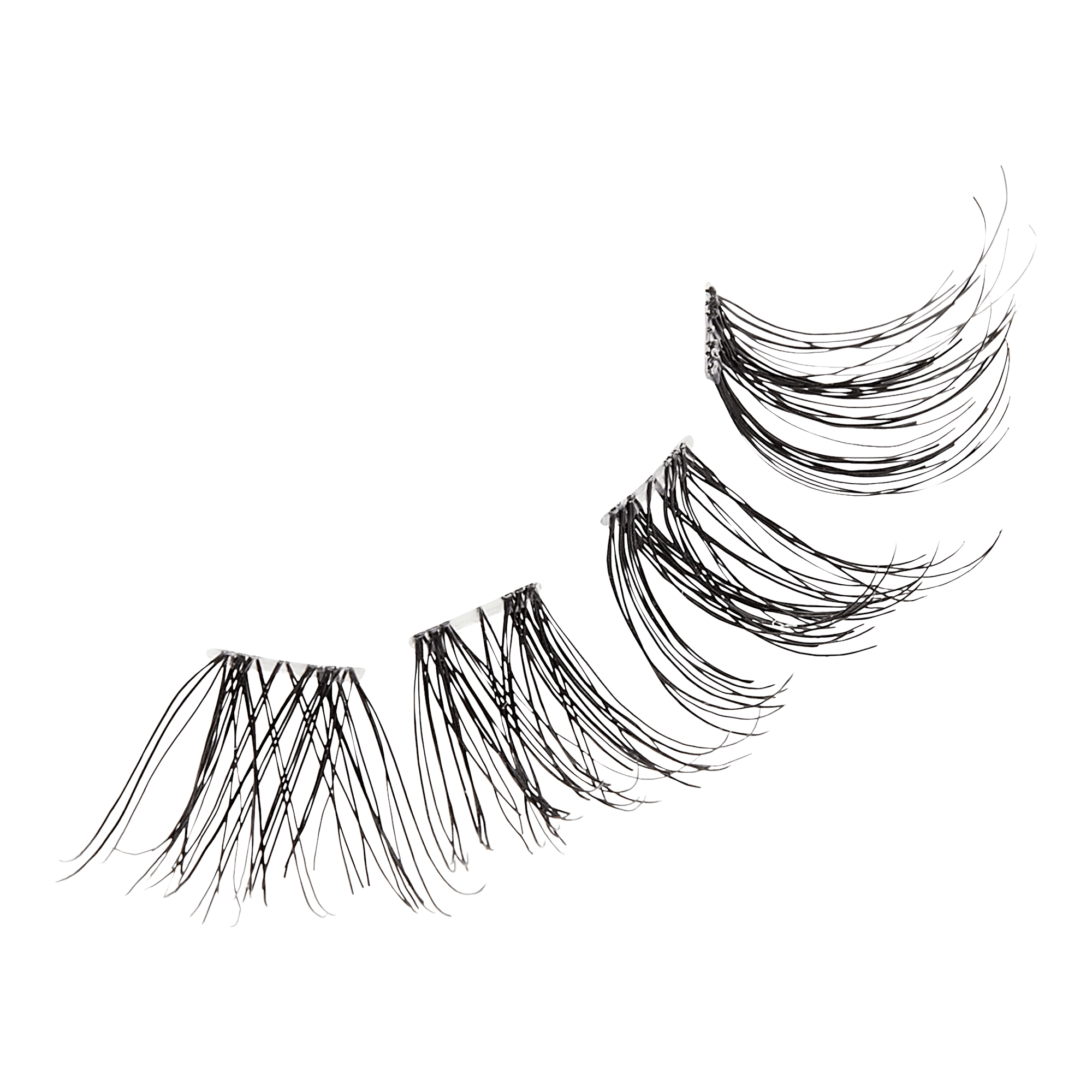 3.From the outer corner, place trio lash on lash line. Hold, allowing adhesive to dry. Gradually work toward the other corner until lashes blend.