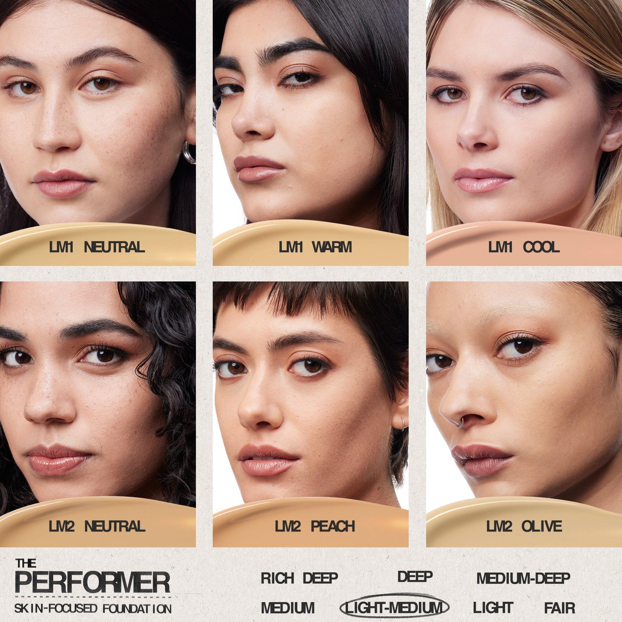 The Performer Skin-Focused Foundation by about-face: buildable, breathable, medium coverage delivers a longwear, second-skin finish.